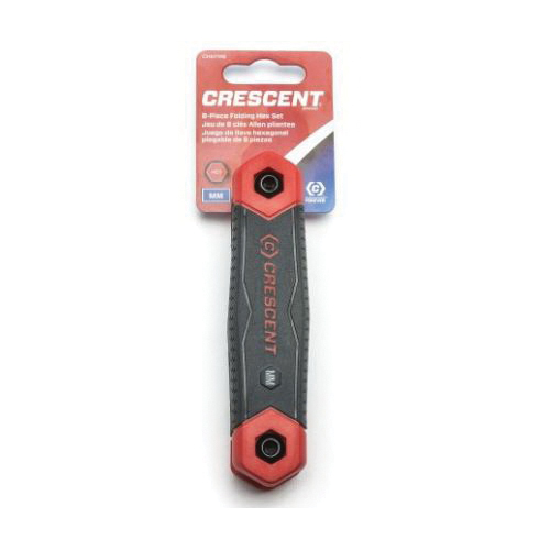 Crescent CHKFM8 Dual Material Folding Standard Length Hex Key Set, 8 Pieces, 1.5 to 8 mm Hex, Hex Drive, Comfort Grip Handle, ASME B18.3.2M, Alloy Steel, Black Oxide