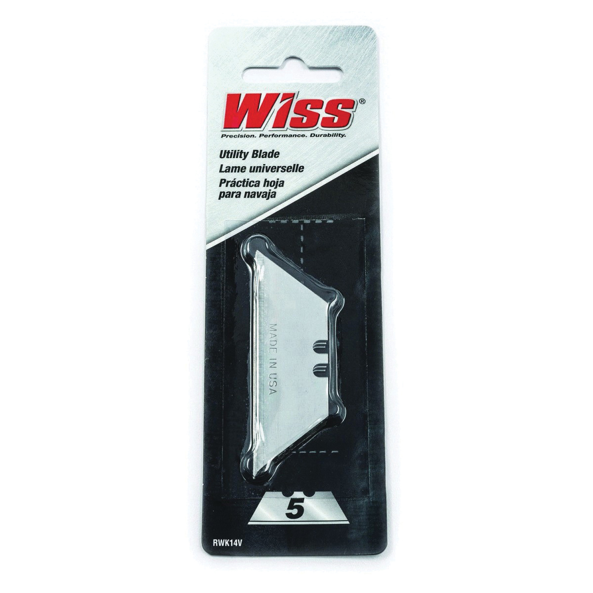 "CrescentRWK14V 5-Piece Heavy Duty Utility Replacement Blade, Steel, Standard Blade, Sharp Point, Compatible With: Standard Utility Knives, 0.025 in THK"