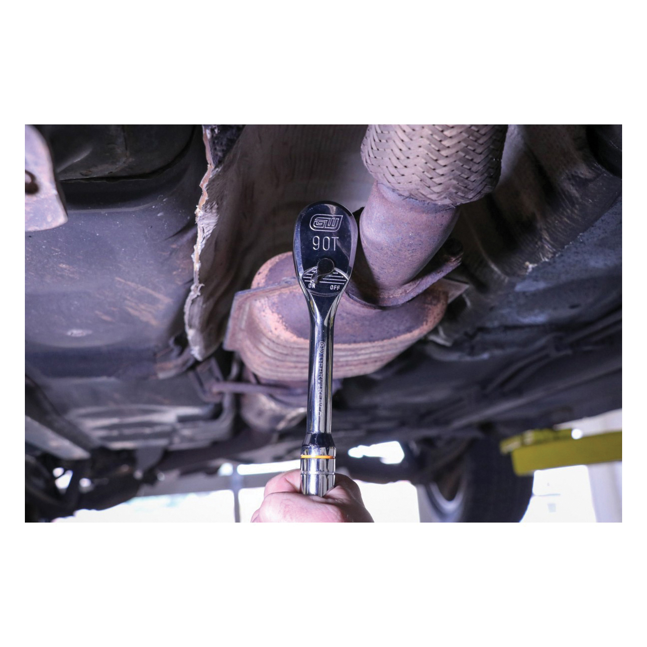 - 90-tooth gear delivers a 4 deg swing arc to turn a fastener in tight confines