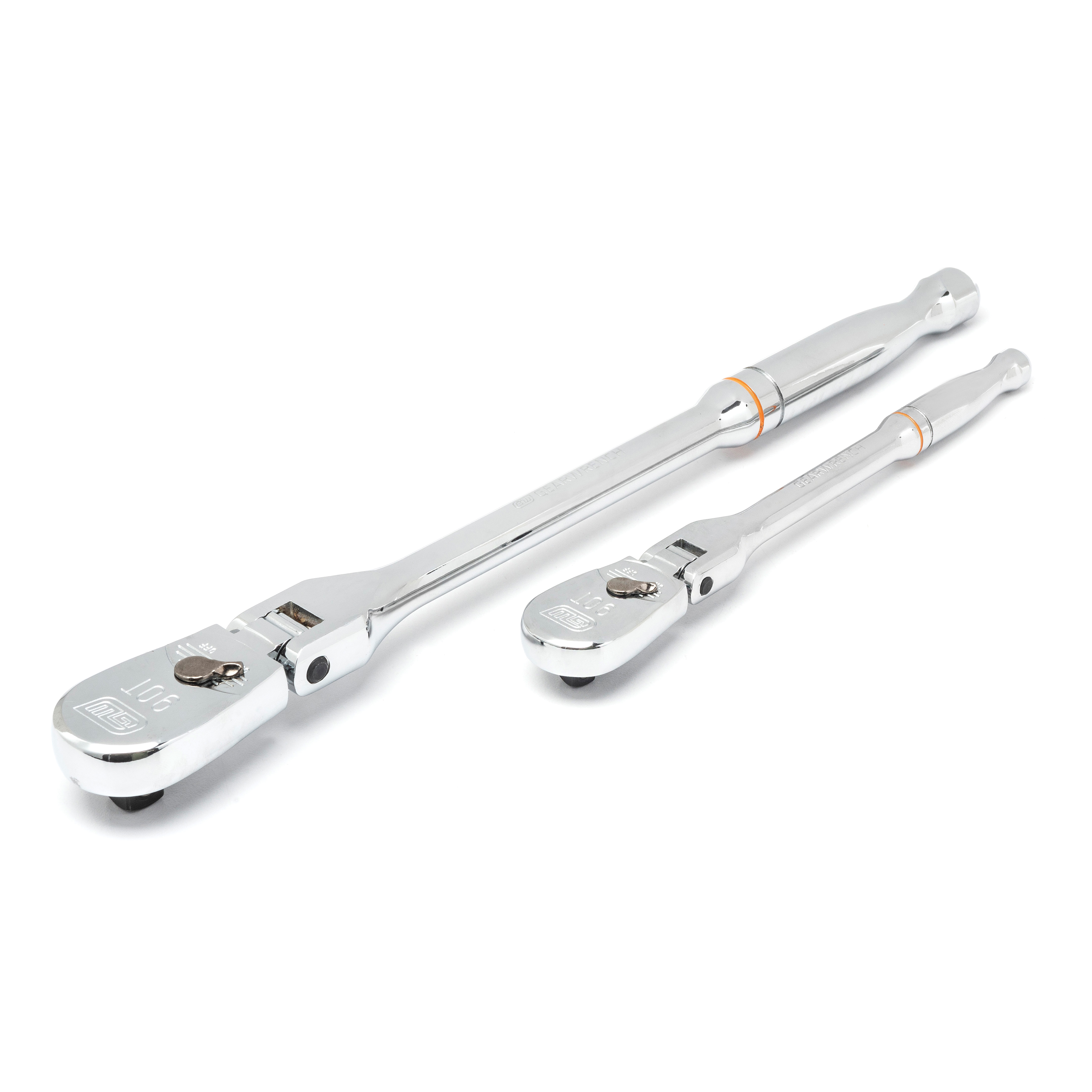 GEARWRENCH 90T 81216T 2-Piece Flexible Head Ratchet Set, 1/4 in, 3/8 in Drive, Teardrop Head, 2 Pieces, Alloy Steel, Polished Chrome