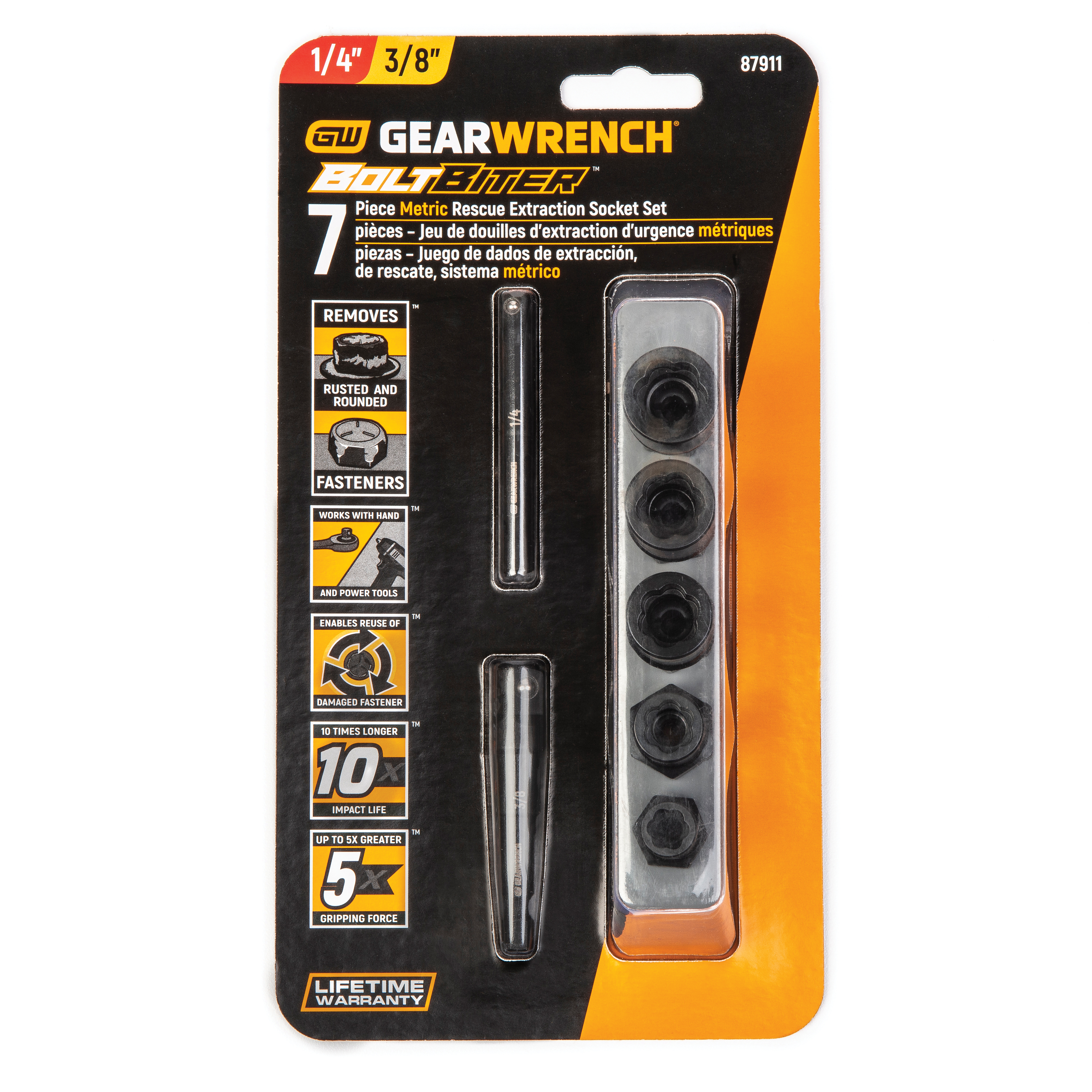 GEARWRENCH Bolt Biter 87911 Impact Extraction Socket Set, 7 Pieces, Included Socket Size: 1/4 in, 3/8 in