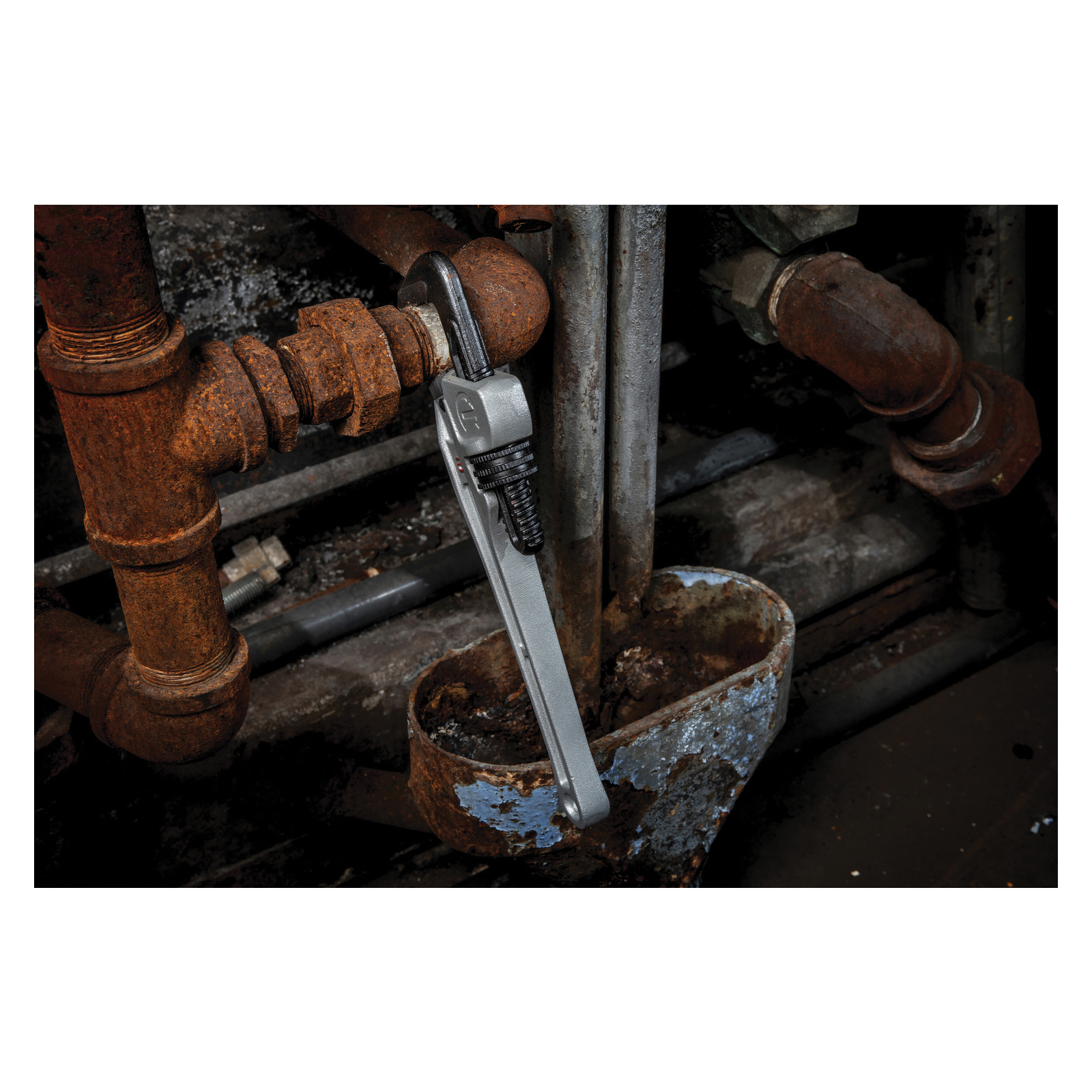 - Adjustment ring thread pitch angled for 2x faster opening and closing of wrench jaw