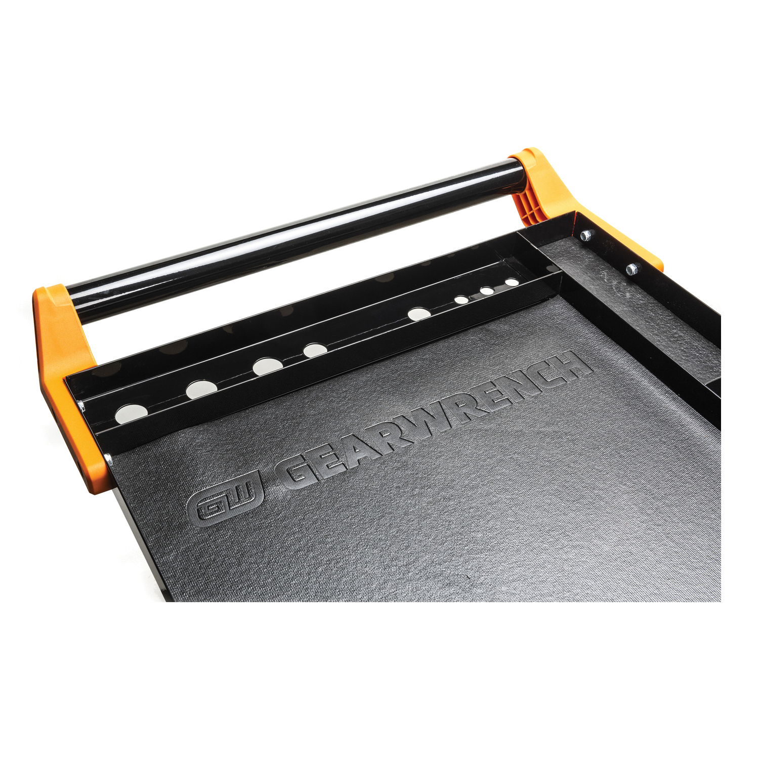 GEARWRENCH 83166 Adjustable Height Mobile Work Table, 20 in L x 35 to 48 in H, 125 lb Center, 65 lb Edges Load, Black/Orange