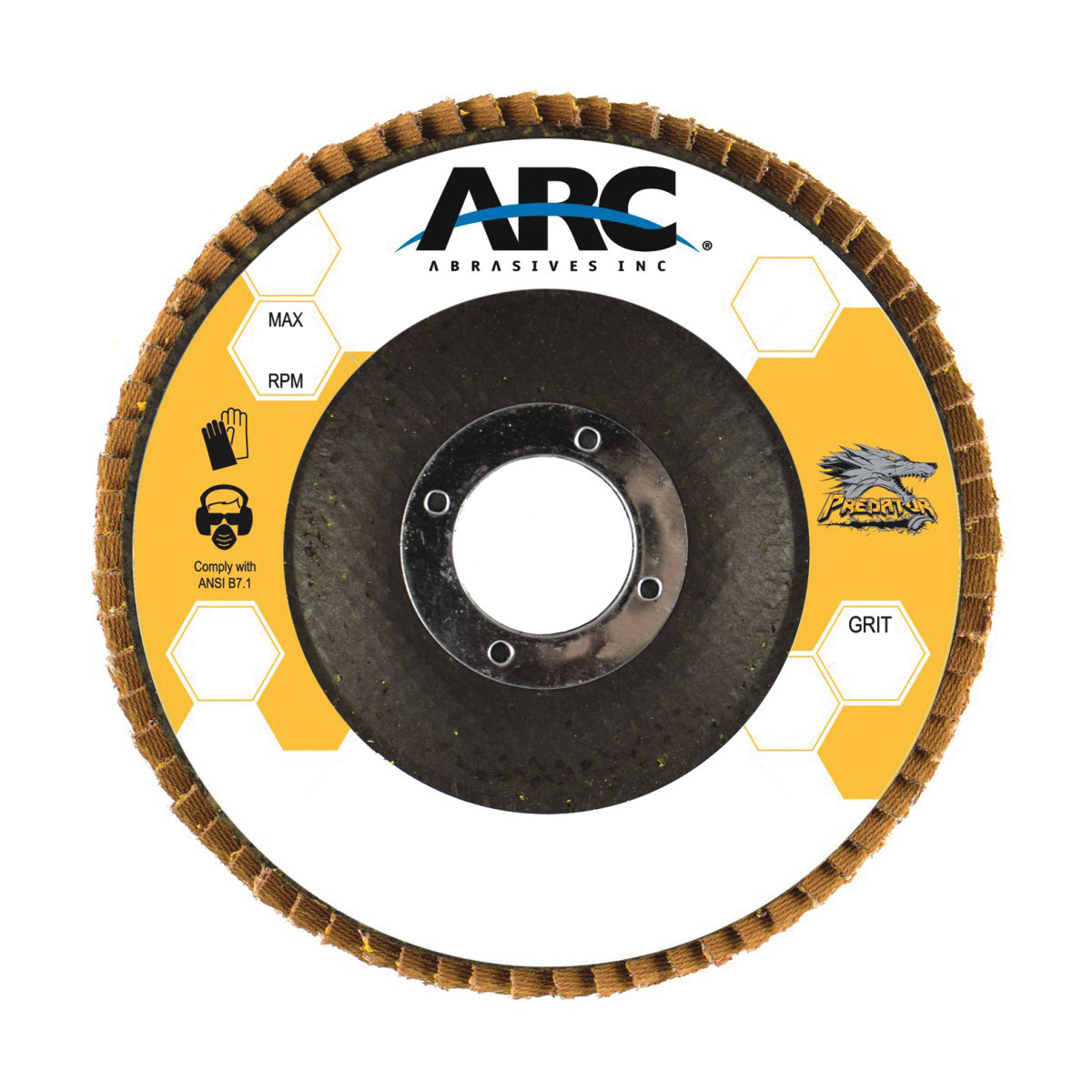ARC PREDATOR 71-10824AF COATED ABRASIVE FLAP DISC, 4-1/2 IN DIA DISC, 7/8 IN CENTER HOLE, CERAMIC ABRASIVE, TYPE 29 DISC