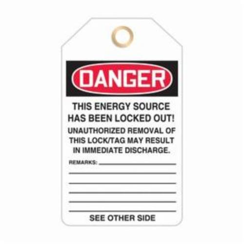 Accuform TAK631 Loop n Lock Tie Tag, 5-3/4 in H x 3-1/4 in W, Black/Red/White, 3/8 in Hole, Plastic