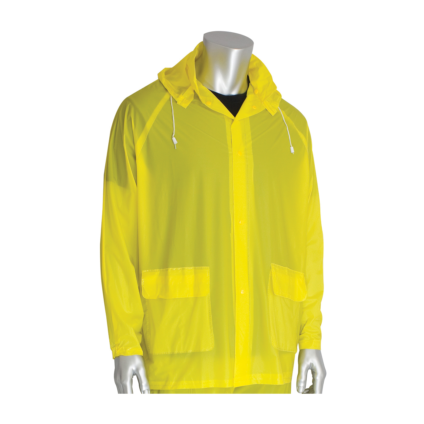 PIP FALCON 201-100X1 3-Piece Waterproof Rainsuit XL Yellow PVC 50 in Waist 31 in L Inseam Detachable Hood