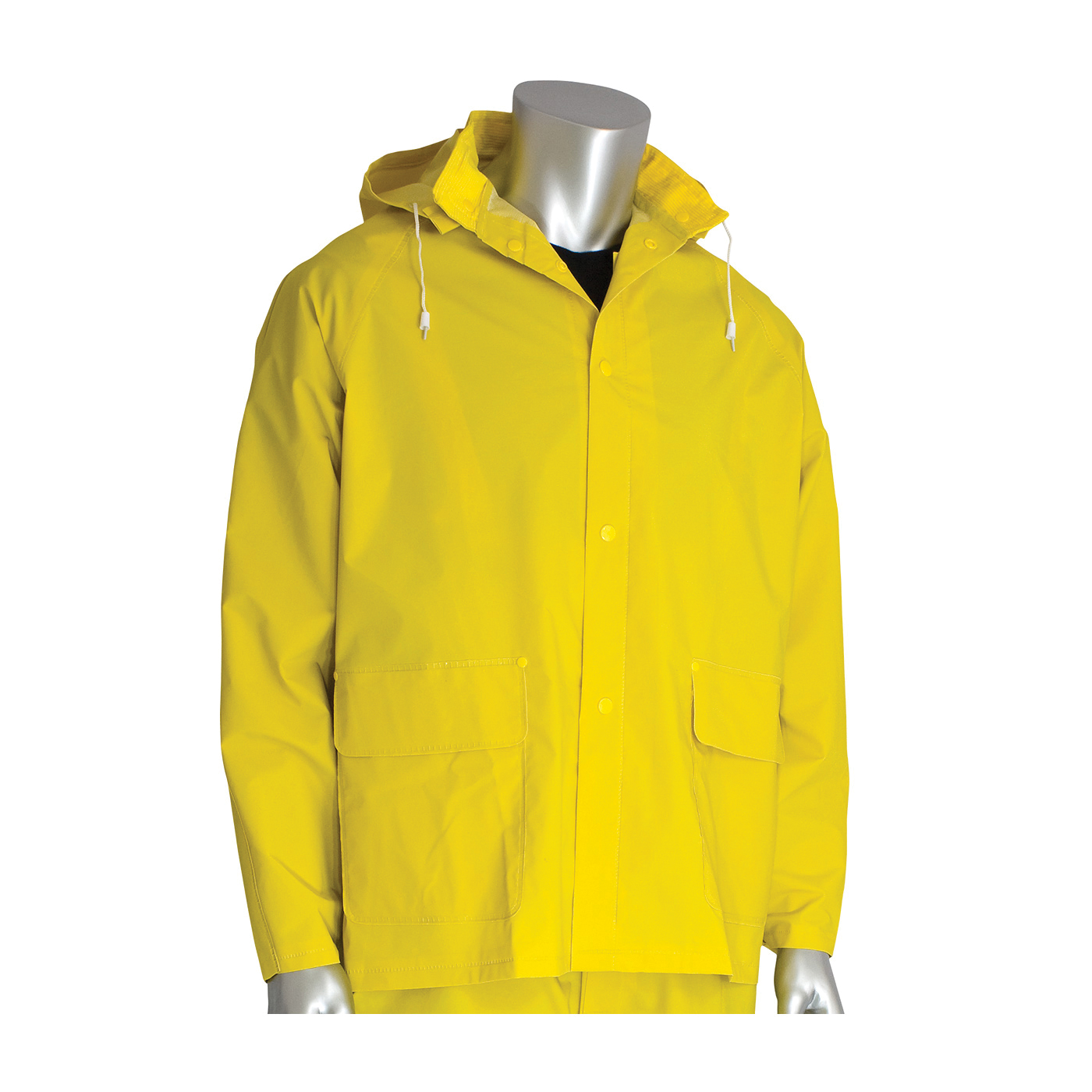 - Chest Size:50 inClosure Type:SnapColor:Hi-Viz Lime YellowHood Style:DetachableInseam Length:29 inMaterial:Polyester/Corduroy/PVCSeries:201-370Size:SThickness:0.35 mmType:3-Piece PremiumWaist Size:46 in