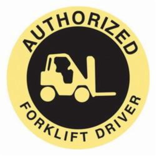 Brady 42229 Circular Non-Reflective Self-Adhesive Emblem Label, AUTHORIZED FORKLIFT DRIVER Legend, Black on Yellow, B-946 Adhesive Vinyl Film, 4 per Card Labels