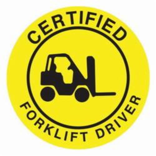 Brady 42233 Circular Non-Reflective Self-Adhesive Emblem Label, CERTIFIED FORKLIFT DRIVER Legend, Black on Yellow, B-946 Adhesive Vinyl Film, 4 per Card Labels