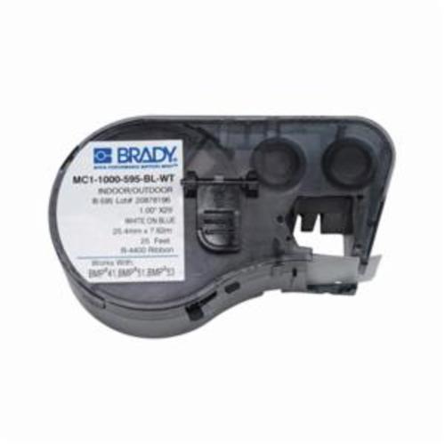 Brady MC1-1000-595-BL-WT M Series Label Maker Cartridge, 25 ft L x 1 in W, For Use With BMP 41 Label Printers, BMP 51 and BMP 53 Label Maker, B-595 Vinyl, White on Blue
