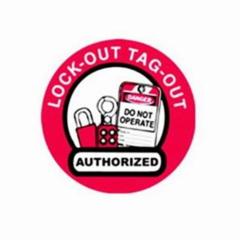 - Legend:LOCKOUT TAGOUT AUTHORIZEDLegend/Background Color:Black/Red on WhiteMaterial:B-946 VinylType:Circular Non-Reflective