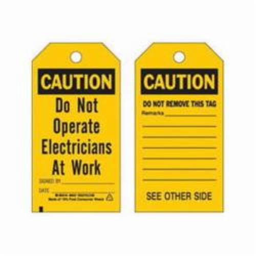 Brady 86547 Rectangular Accident Prevention Tag, 5-3/4 in H x 3 in W, Black on Yellow, 3/8 in Hole, B-851 Polyester