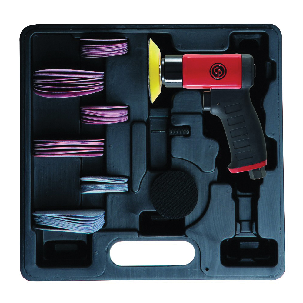 Chicago Pneumatic 8941172001 Mini Random Orbital Sander, 2 in, 3 in Round Pad, 10.5 to 21 cfm Air Flow, Hook and Loop Pad Grip Method