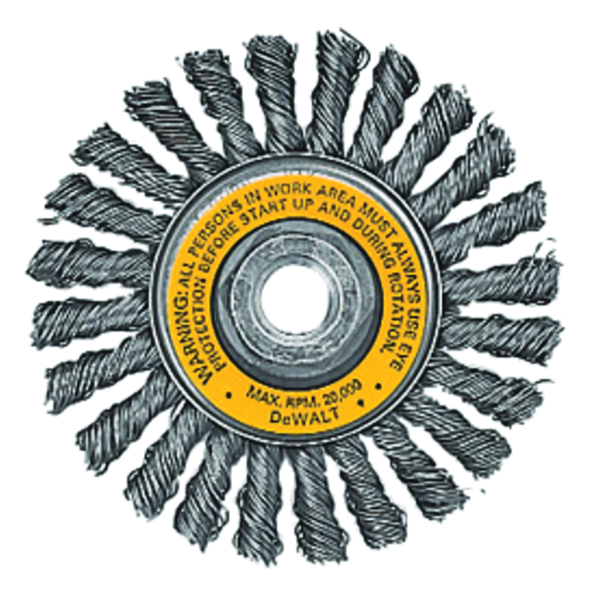 DeWALT DW4930 Wire Wheel Brush, 4 in Dia Brush, 1/2 in W Face, 0.02 in Dia Twisted Wire Filament/Wire, 5/8-11 Arbor Hole