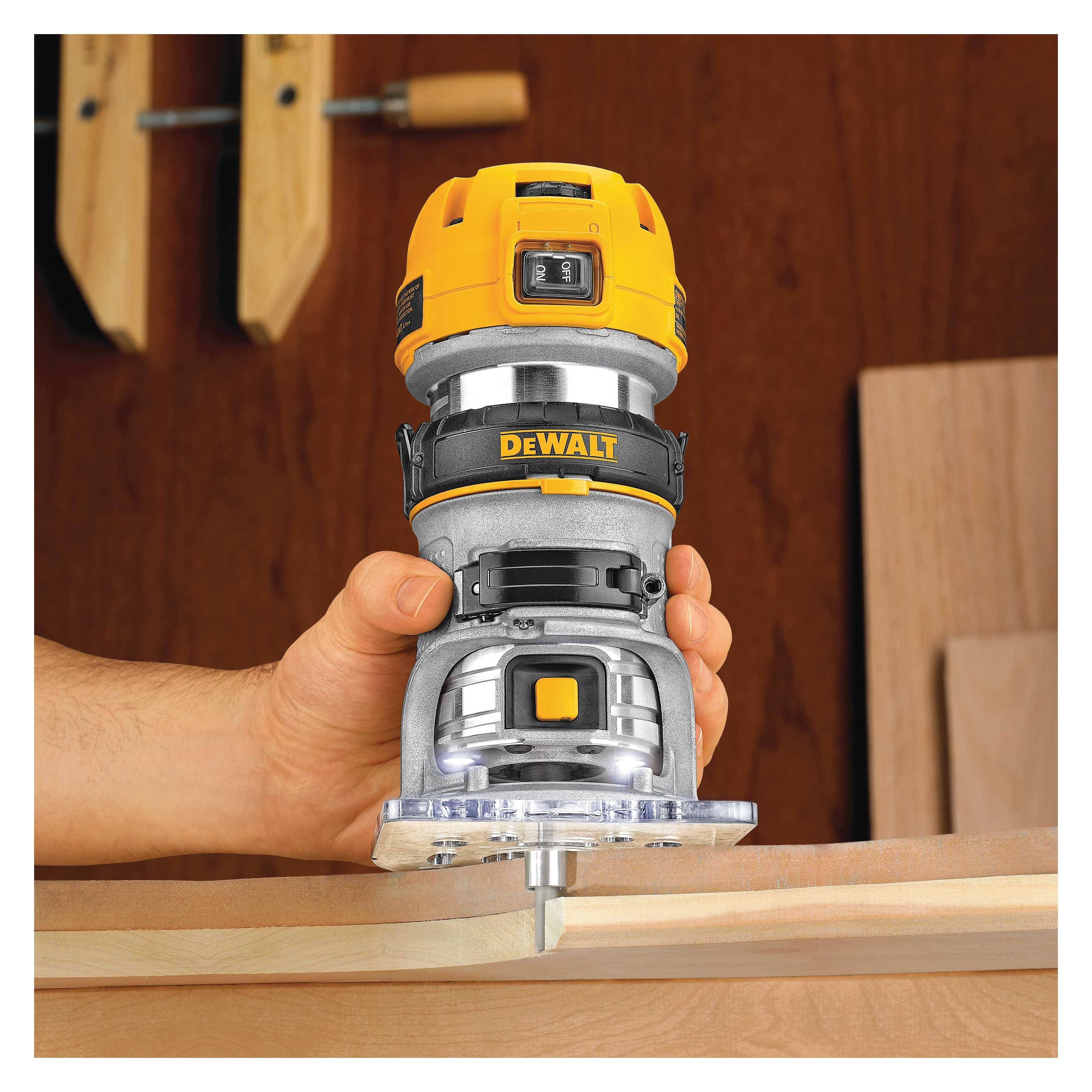 DeWALT DWP611 Compact Variable Speed Premium Router With LEDs, Rocker Switch, 1/4 in Chuck, 16000 to 27000 rpm Speed, 1-1/4 hp, 120 V AC
