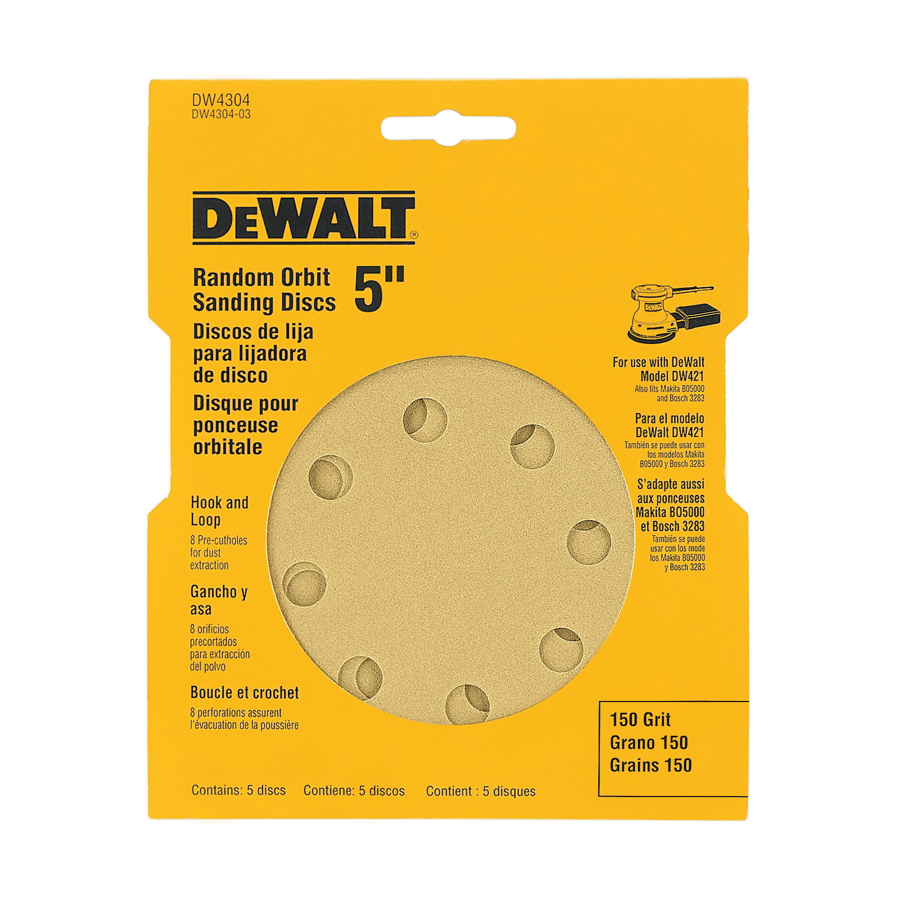 DeWALT DW4312 Hook and Loop Disc, 5 in Dia, 150 Grit, Very Fine Grade, Aluminum Oxide Abrasive, Paper Backing