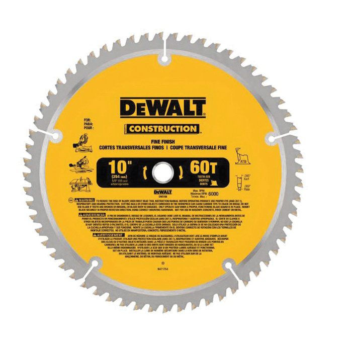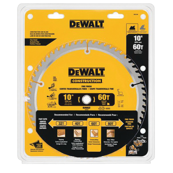DeWALT Guaranteed Tough DW3106P5 Combo Large Diameter Thin Kerf Circular Saw Blade, 10 in Dia x 0.069 in THK, 5/8 in Arbor, Carbide Blade, 32/60 Teeth
