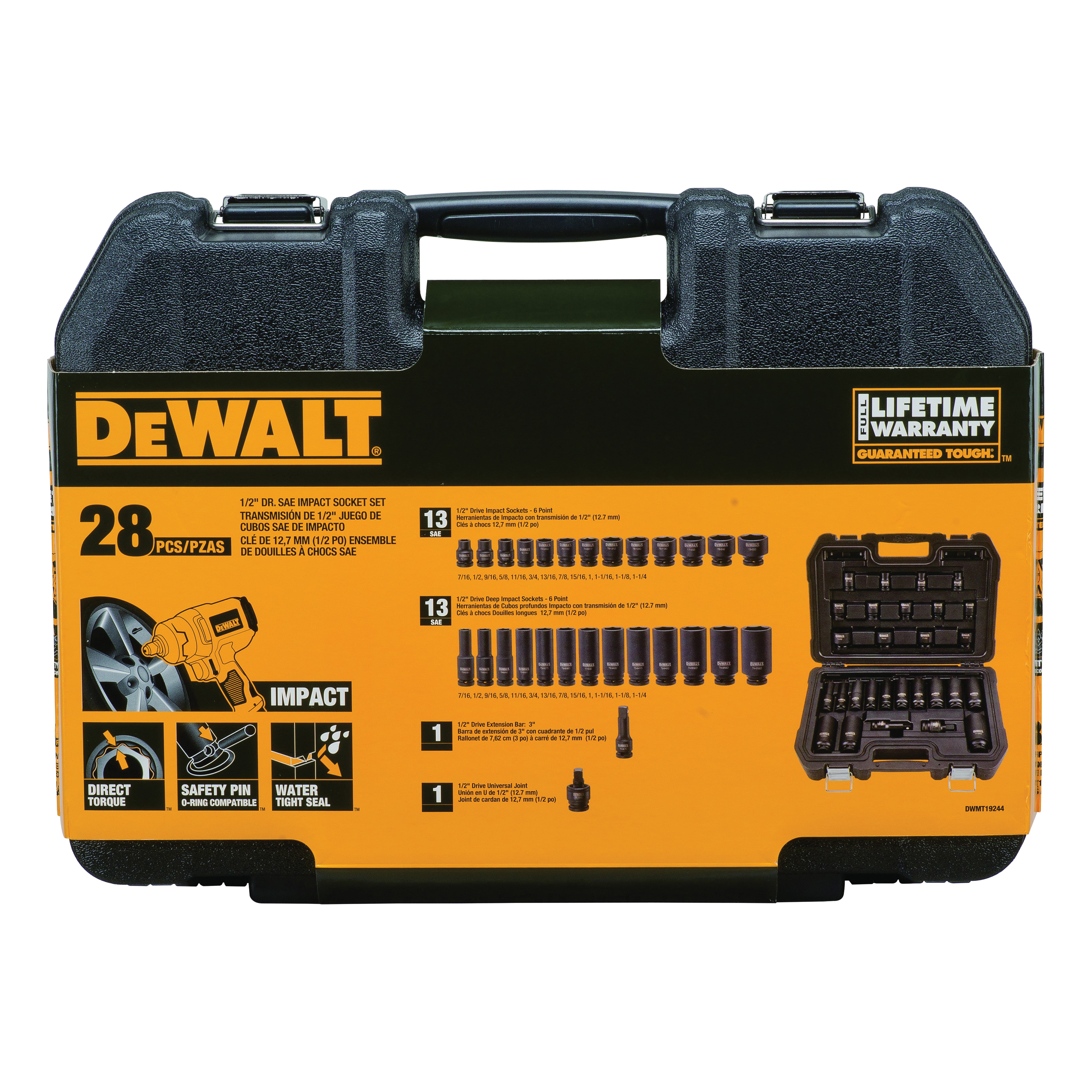 DeWALT DWMT19244 Deep Standard Socket Set, Imperial, 6 Points, 1/2 in, 28 Pieces