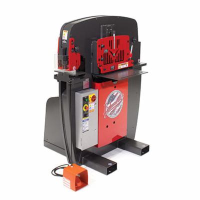 EDWARDS® Ironworker, 55 ton Capacity, 7-1/2 in Throat Depth, 3 x 3 x 3/8 in, 4 x 4 x 1/4 in Angle Shearing, Flat Bar Shearing: 3/8 x 14 in, 1/2 x 12 in, 3/4 x 4 in, Pipe Notching Capacity: 2-1/2 x 4 x 5/16 in, 65000 psi Punch, 5 hp, 3 ph, 208 V, 14 A Motor, 1725 rpm Speed, 2500 psi Hydraulic, 36-1/8 in L x 44-3/8 in W x 55-1/4 in H Dimensions