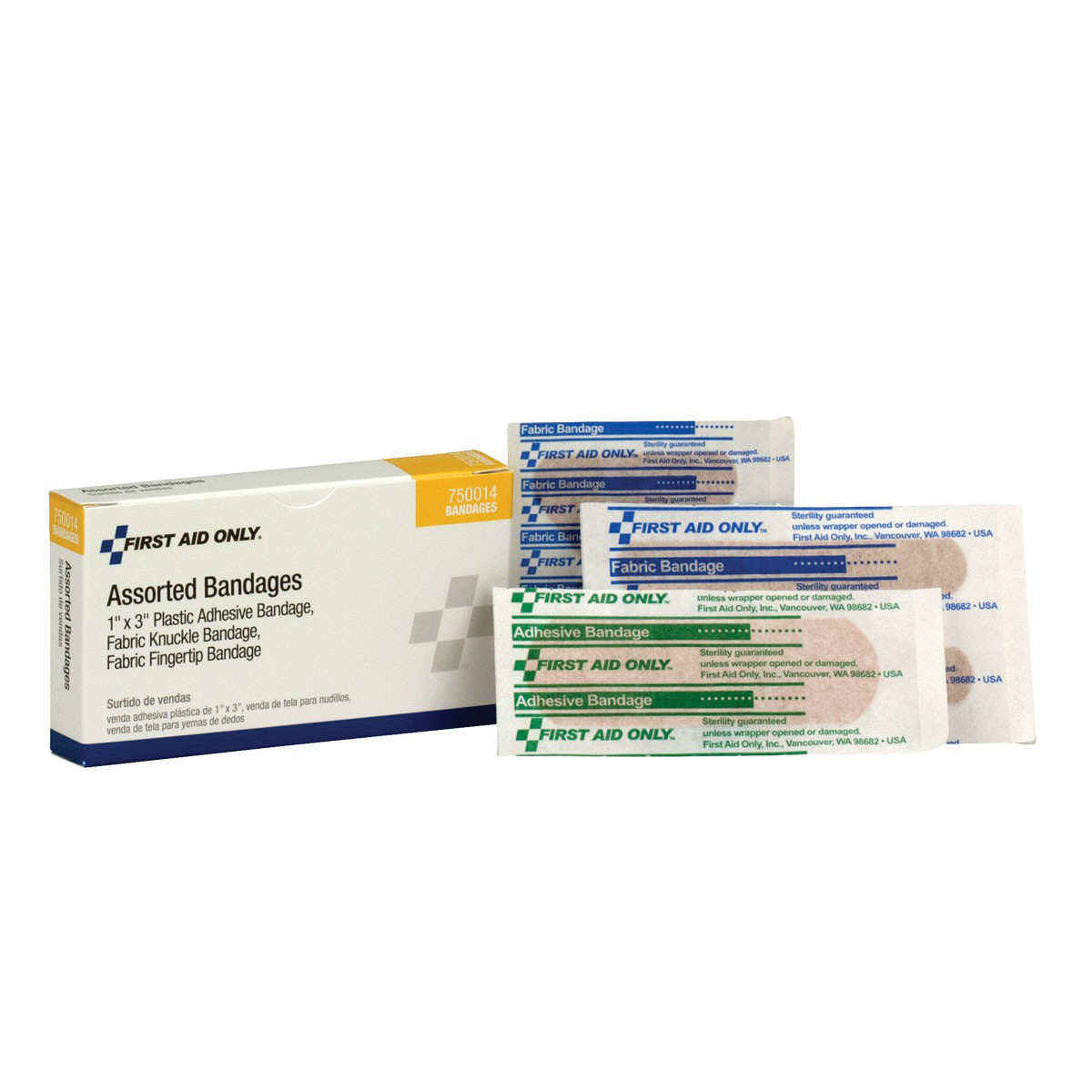 First Aid Only® Adhesive Bandage, Assorted, 4 in Length, 5/8 in Width, Fabric, Beige, Box