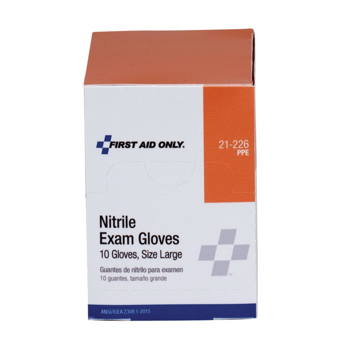 First Aid Only 21-226 Nitrile Exam Gloves, L, Nitrile, Clear, 10 in L, Non-Powdered, Application Type: Medical, Dental and EMT Personnel