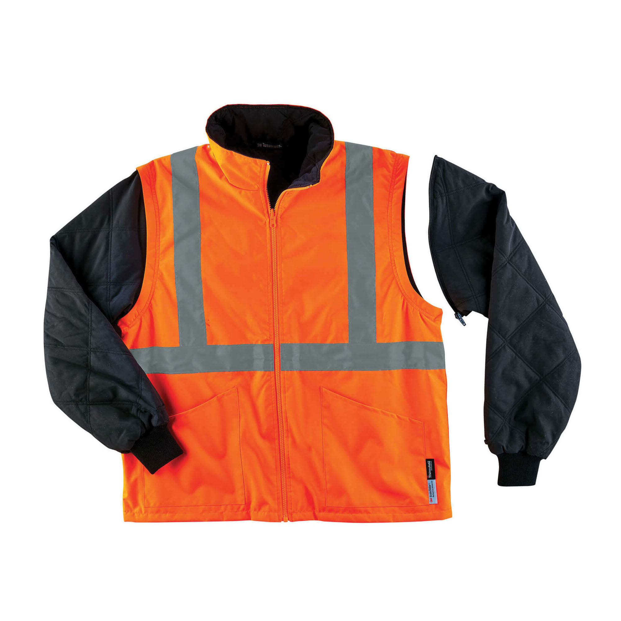 • Inner jacket zips out and sleeves zip off to create class 2 thermal vest