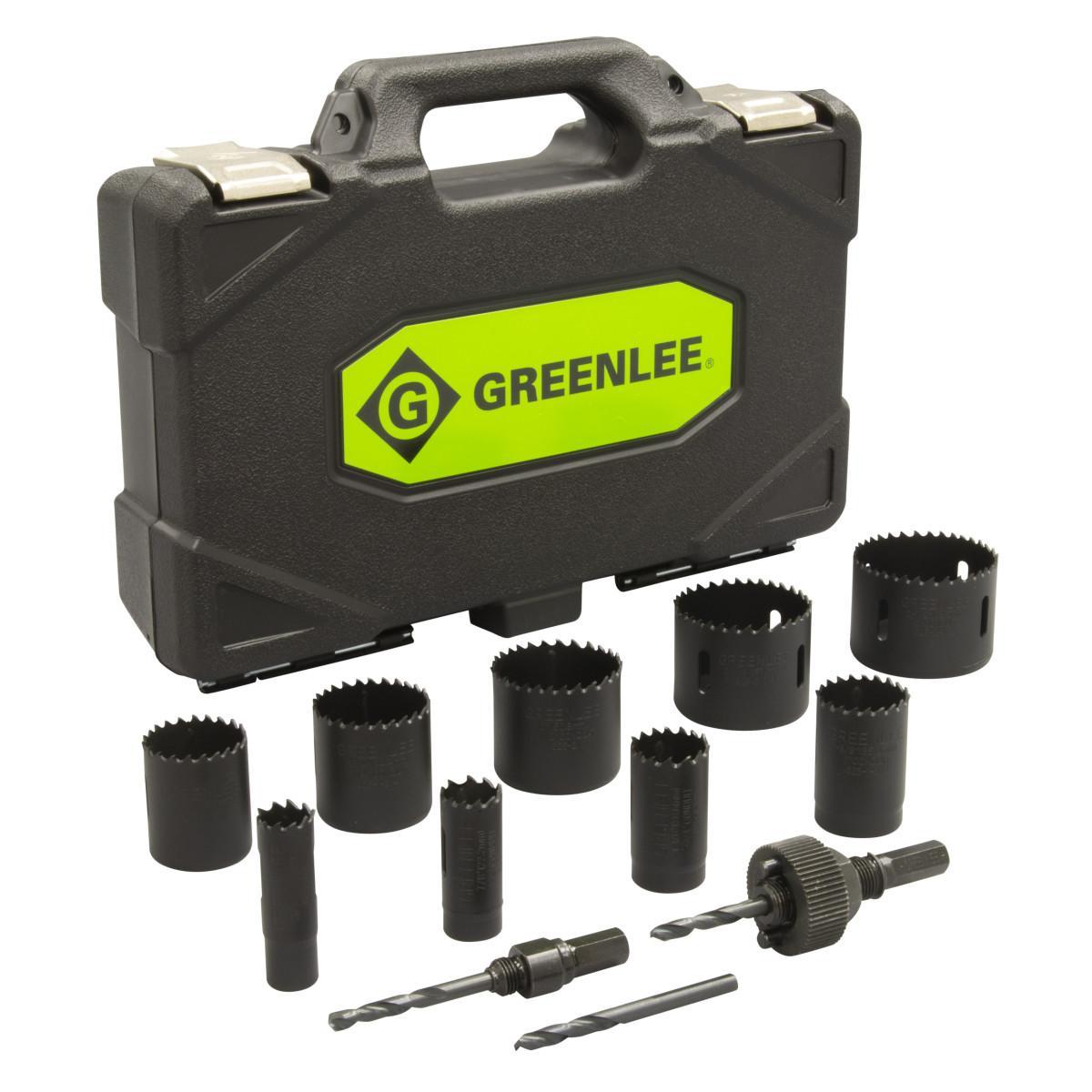 - Several electrician's kits providing an assortment of the most commonly used Greenlee® variable pitch hole saw sizes and arbors