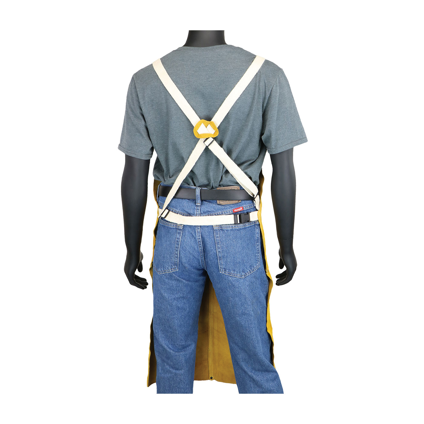 Ironcat 7010/36 Welding Apron 36 in L x 24 in W Kevlar/Leather Yellow Buckle Closure 2 Pockets Sewn Seam