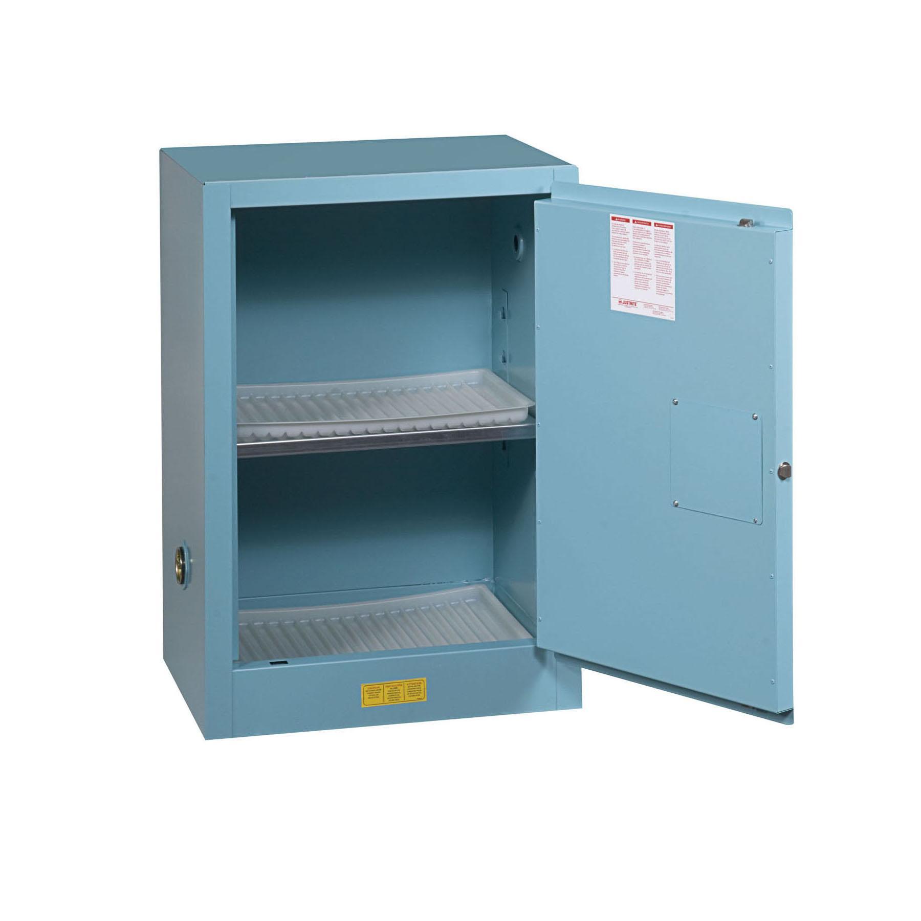 Justrite 891222 Sure-Grip EX Compact Corrosive Safety Cabinet, 12 gal Capacity, 35 in H x 23-1/4 in W x 18 in D, Self-Close Door, 1 Door, 1 Shelve, 18 ga Cold Rolled Steel, Blue