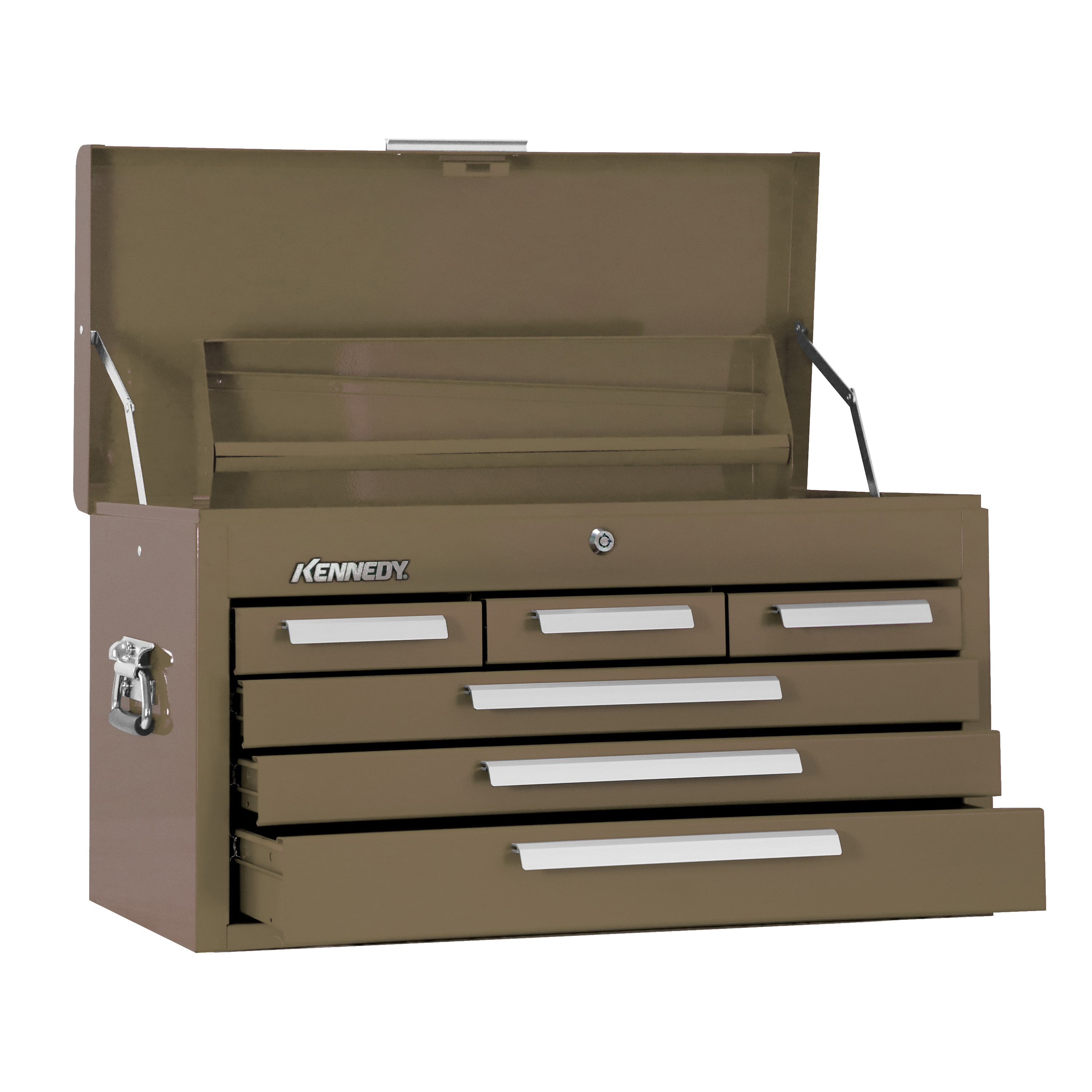 - Capacity:3178 cu-inColor:Brown WrinkleDepth:12-1/8 inDrawer Size:(3) 2 in H x 6-7/8 in W x 10-3/4 in D, (2) 2 in H x 22-7/8 in W x 10-3/4 in D, (1) 3 in H x 22-7/8 in W x 10-3/4 in DFinish:Powder CoatedHandle Type:Bale Side/PlateHeight:14-3/4 inMaterial:SteelNumber of Drawers:6Series:SignatureThickness:20 gaType:Standard DutyWidth:26-1/8 in
