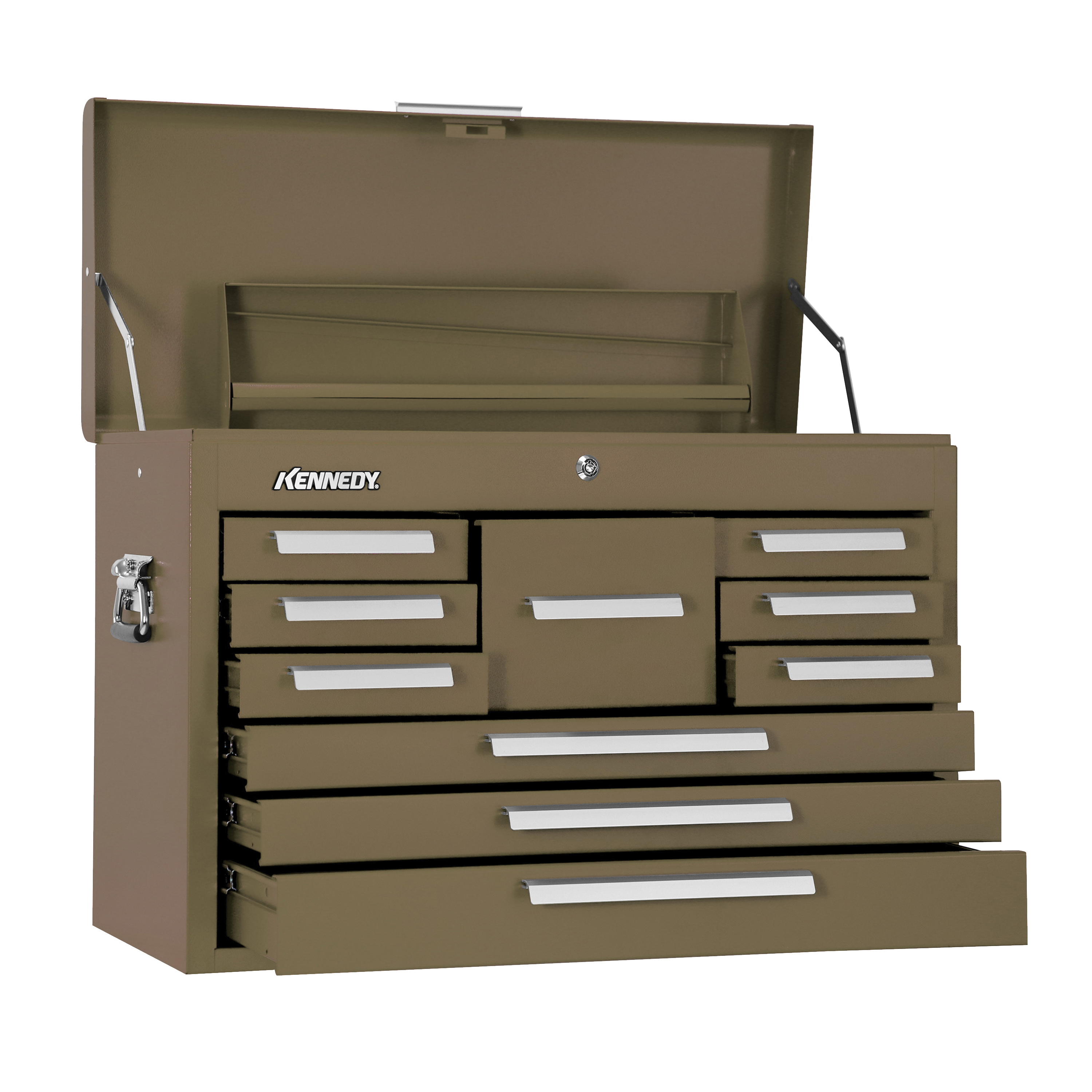 - Capacity:3996 cu-inColor:Brown WrinkleDepth:12-1/8 inDrawer Size:(1) 6-1/4 in H x 6-7/8 in W x 10-3/4 in D, (6) 2 in H x 6-7/8 in W x 10-3/4 in D, (2) 2 in H x 22-7/8 in W x 10-3/4 in D, (1) 3 in H x 22-7/8 in W x 10-3/4 in DFinish:Powder CoatedHandle Type:Bale Side/PlateHeight:18-7/8 inMaterial:SteelNumber of Drawers:10Series:SignatureThickness:20 gaType:Standard DutyWidth:26-1/8 in