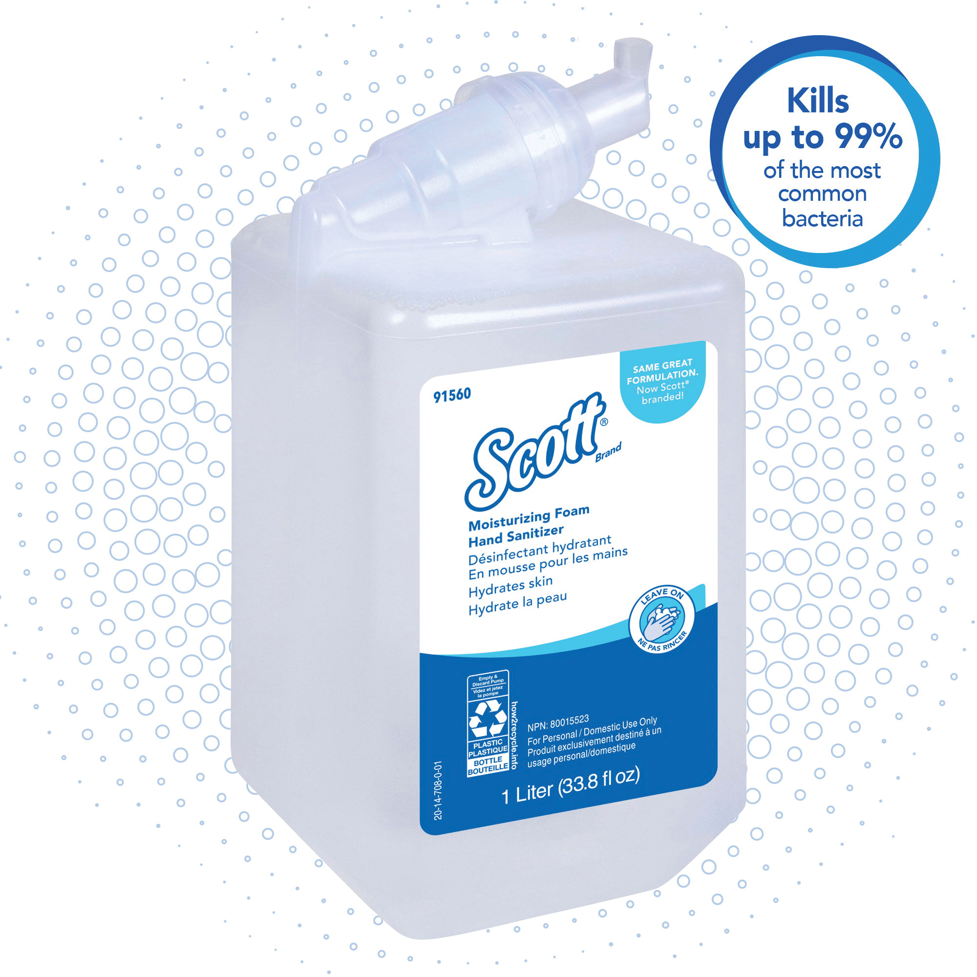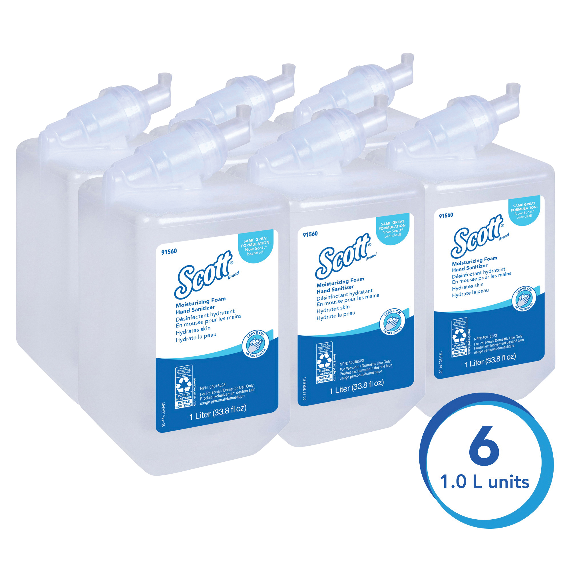 Scott 91560 Moisturizing Foam Hand Sanitizer, 1 L Nominal, Cassette Package, Gel Form, Pleasant/Fresh Odor/Scent, Clear