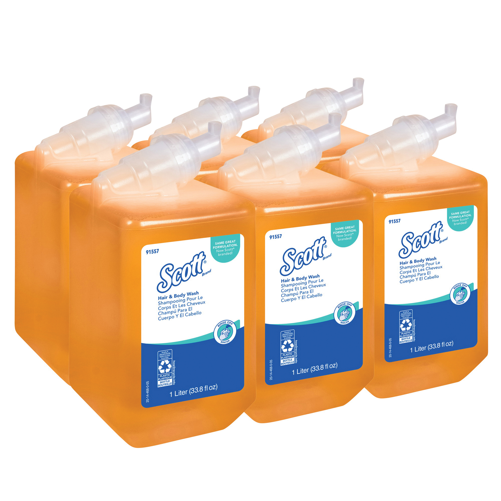 Scott 91557 Hair and Body Wash, 1 L Nominal, Cassette Package, Gel Form, Citrus Odor/Scent, Yellow