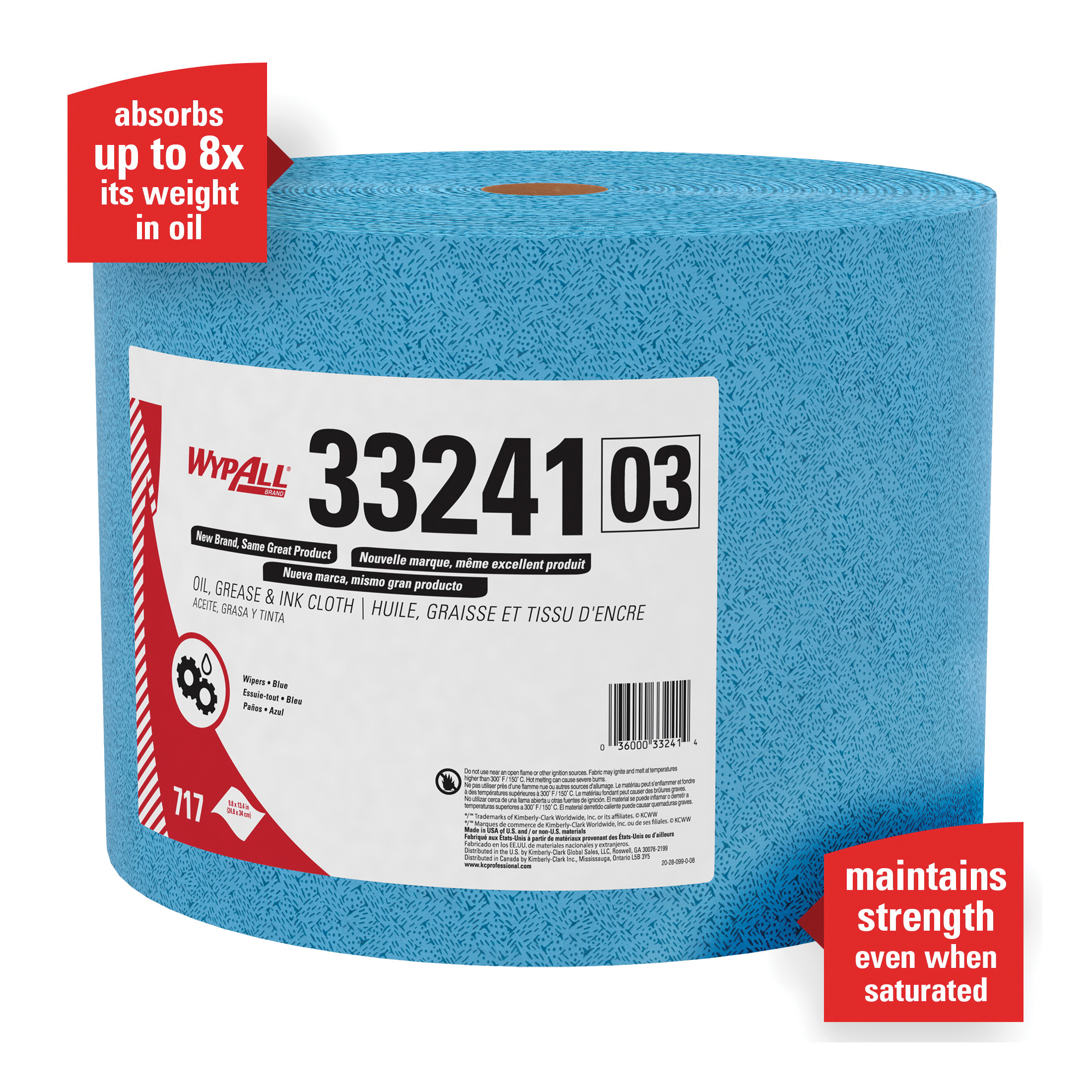 "Kimtech* 33241 Cleaning Wiper, 13.4 x 9.8 in, 717 Sheets Capacity, Hydroknit*, Blue, Jumbo Roll Package, 1 Ply"