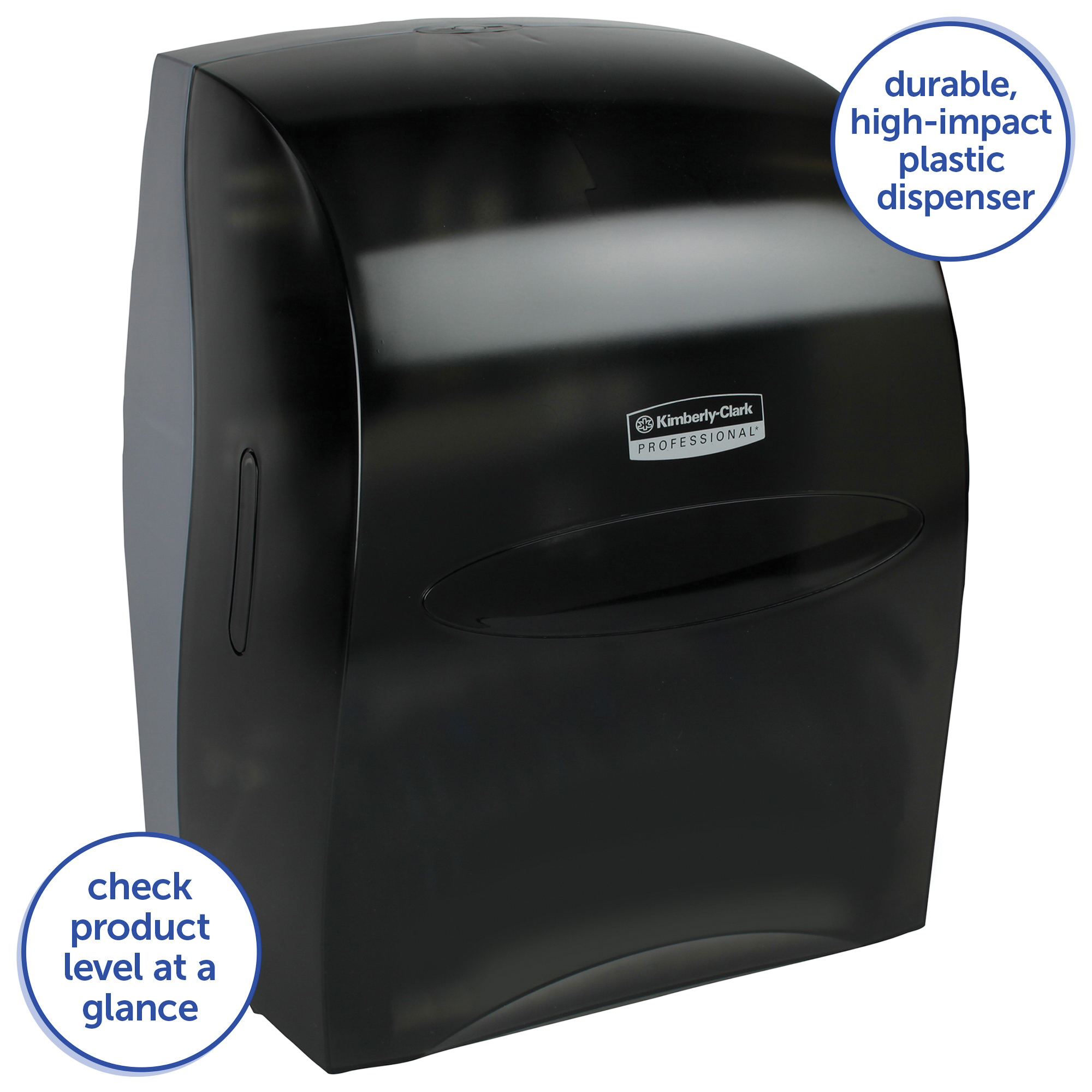 - The SANITOUCH hard roll paper towel dispenser (in black), by Kimberly-Clark Professional, is a high capacity wall-mount system for less maintenance time, run outs and complaints