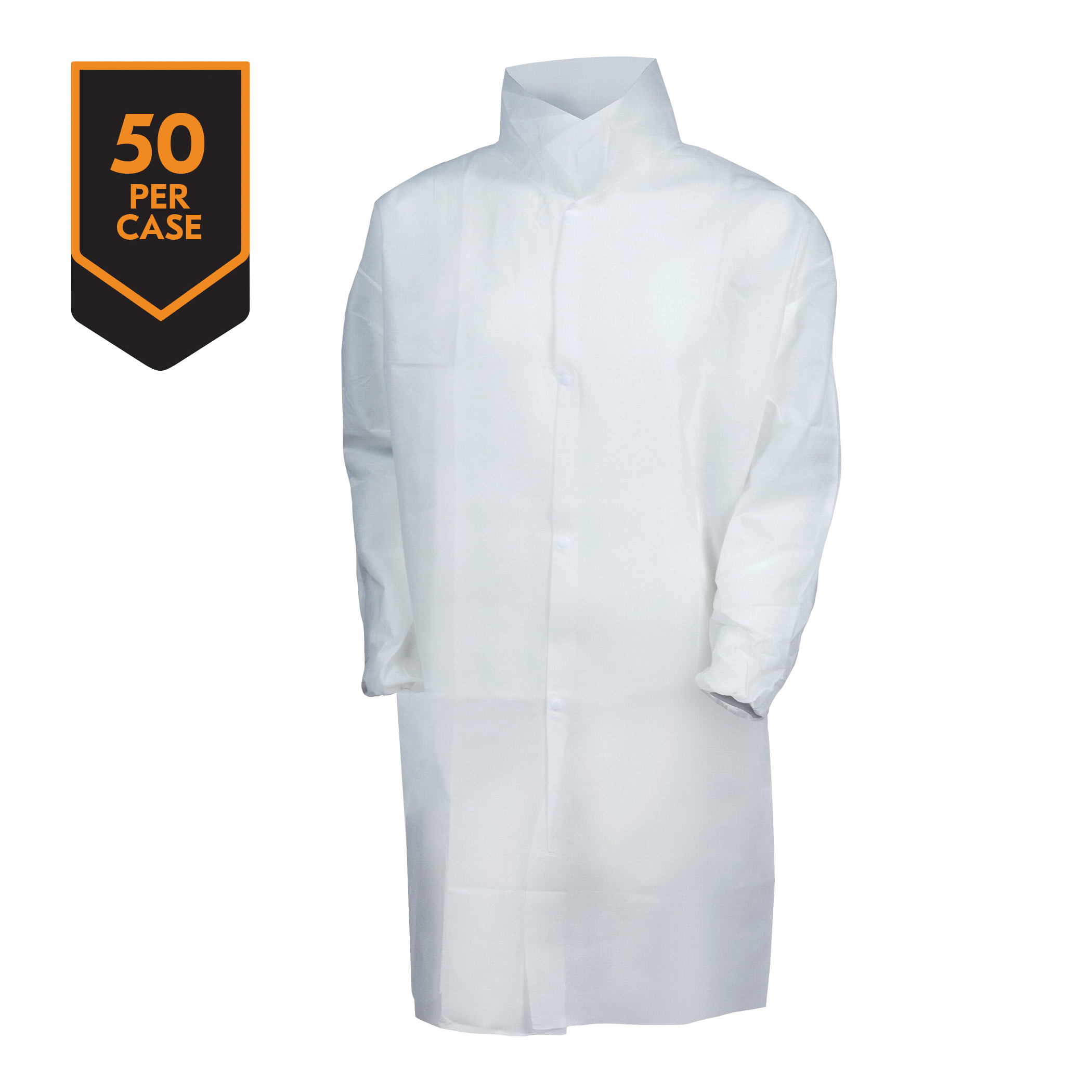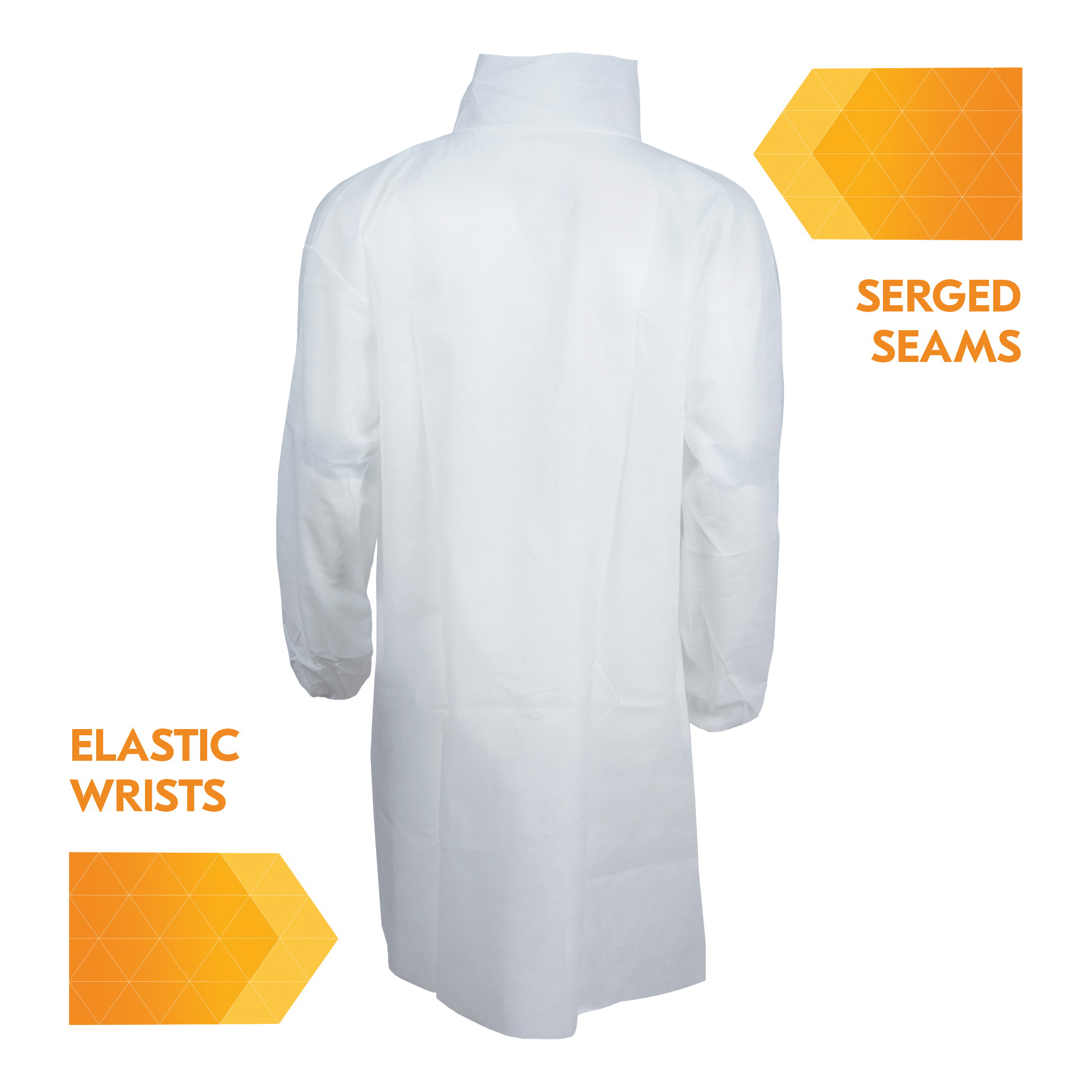 KleenGuard 40104 A10 Light Duty Disposable Lab Coat, Unisex, XL, White, Spunbond Polypropylene, 4-Snap Front Closure, Specifications Met: ANSI/ISEA 101-1996, TAA Complaint
