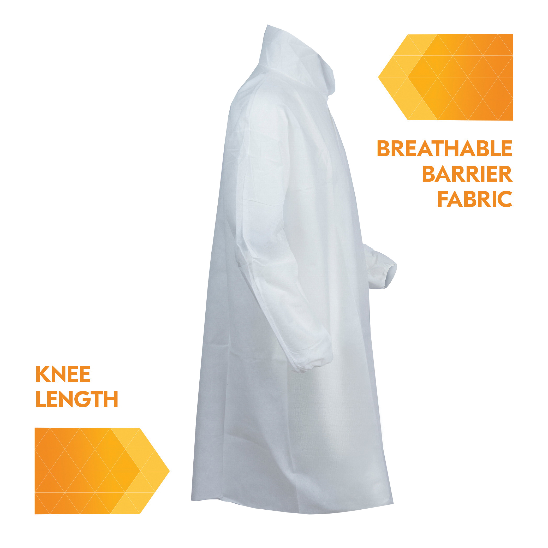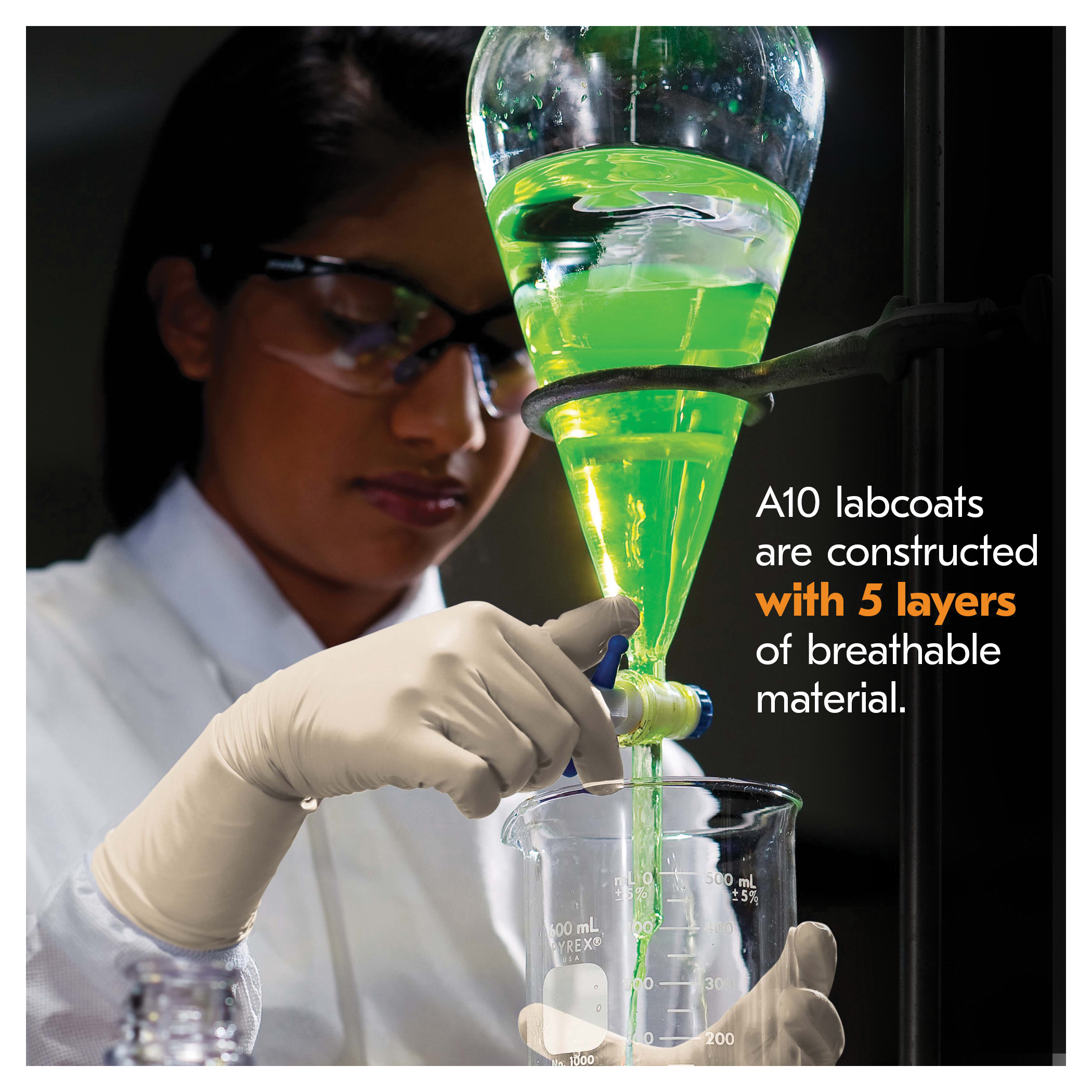 - A10 lab coats are made with breathable barrier fabric (lightweight polypropylene material)
