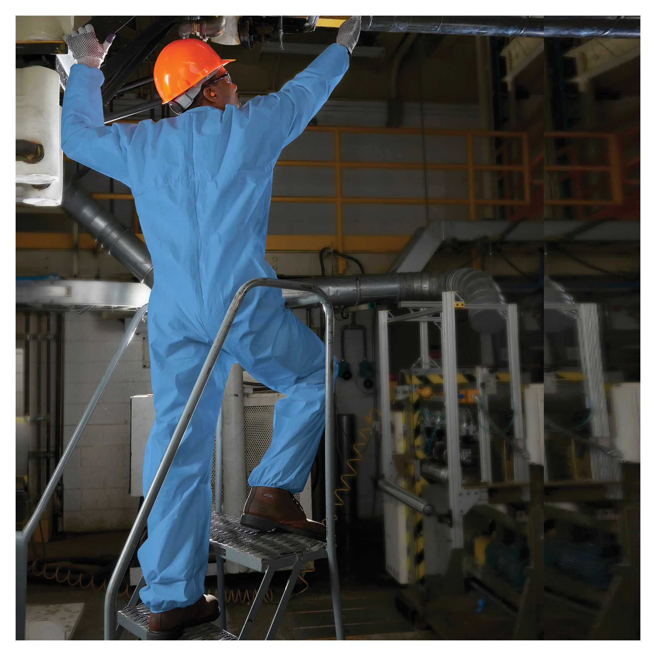 KleenGuard 45317 A65 Anti-Static Disposable Flame Resistant Coverall, 4XL, Blue, Polyester Spun, 58 to 60 in Chest, 32 in L Inseam