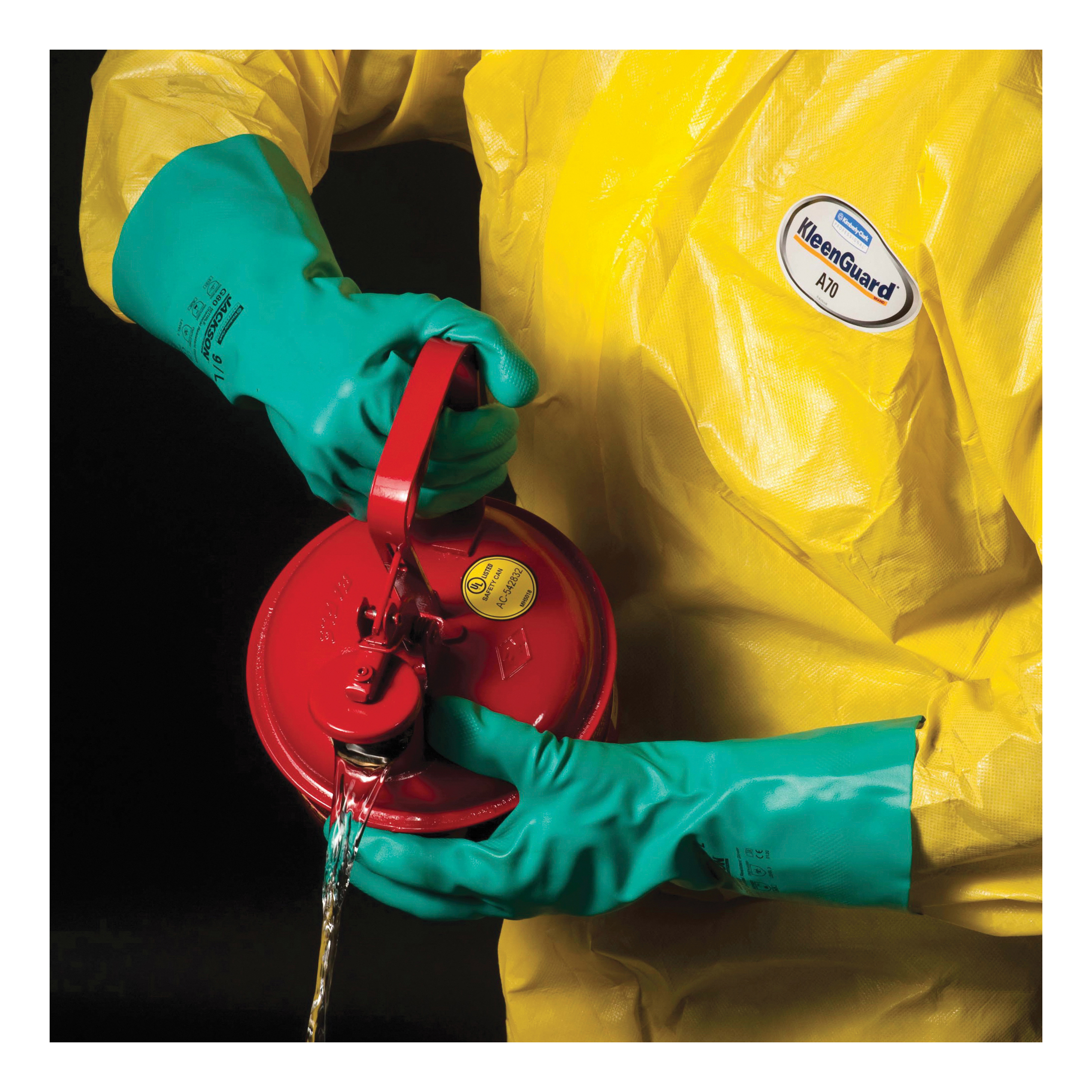 KleenGuard 94446 G80 Reusable Chemical-Resistant Gloves M Nitrile Green Flocked Cotton Lining 13 in L Resists: Acids Caustics Chemical Bases Solvents and Other Aqueous Solutions Straight Cuff 15 mil THK