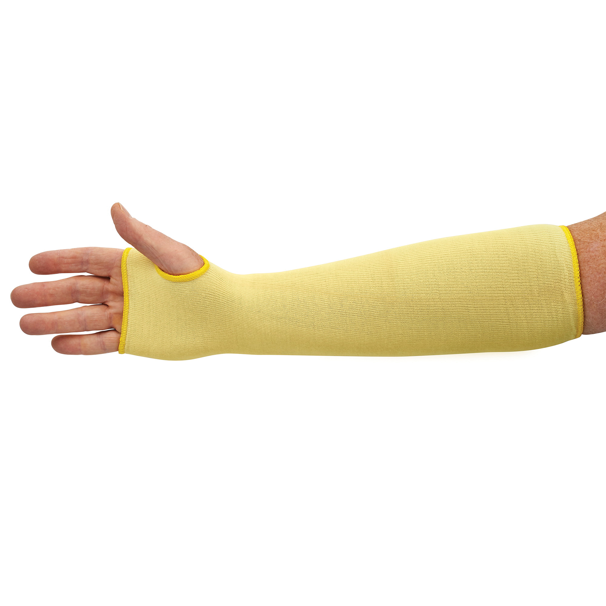 KleenGuard 90070 G60 Cut-Resistant Sleeves With Thumb Hole, Universal, 18 in L, Aramid Outer Layer/Cotton Inner Layer/Kevlar/Natural Rubber Latex, Yellow