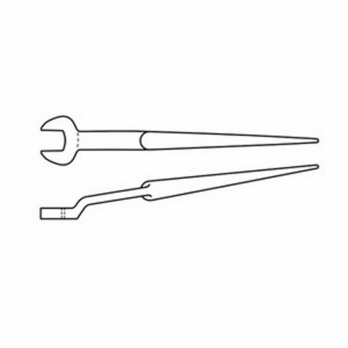 - Finish/Coating:Industrial BlackHandle Size:7/8 to 3/16 in DiaHandle Type:TaperedMaterial:Forged Alloy SteelMeasurement System:ImperialOffset Angle:60 degOpen End Width:2-1/4 inOverall Length:14-3/4 inType:ErectionWrench Opening:13/16 in