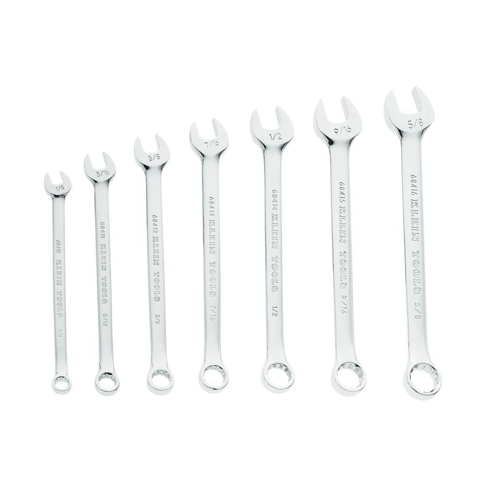 Klein 68406 General Purpose Combination Wrench Set 14 Pieces 3/8 to 1-1/4 in Polished Chrome/Nickel Plated