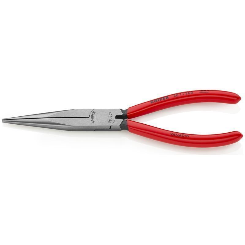 Knipex 38 11 200 Style 1 Mechanics Long Nose Plier, Half-Round Chrome Vanadium Steel Jaw, 2-7/8 in L x 3/8 in W Jaw, 8 in OAL, 3/32 in W Tip