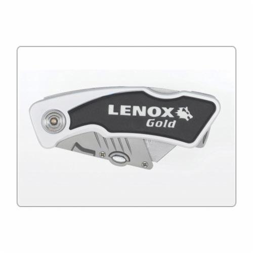 Lenox® Utility Knife, Lockable, 2-3/10 in Blade Length, 1-1/8 in Blade Width, Trapezoid Blade, Bi-Metal Blade, 1 Number of Blades Included, 3/4 in Thickness, Ergonomic Handle, Rubberized Handle, 4.8 in Overall Width