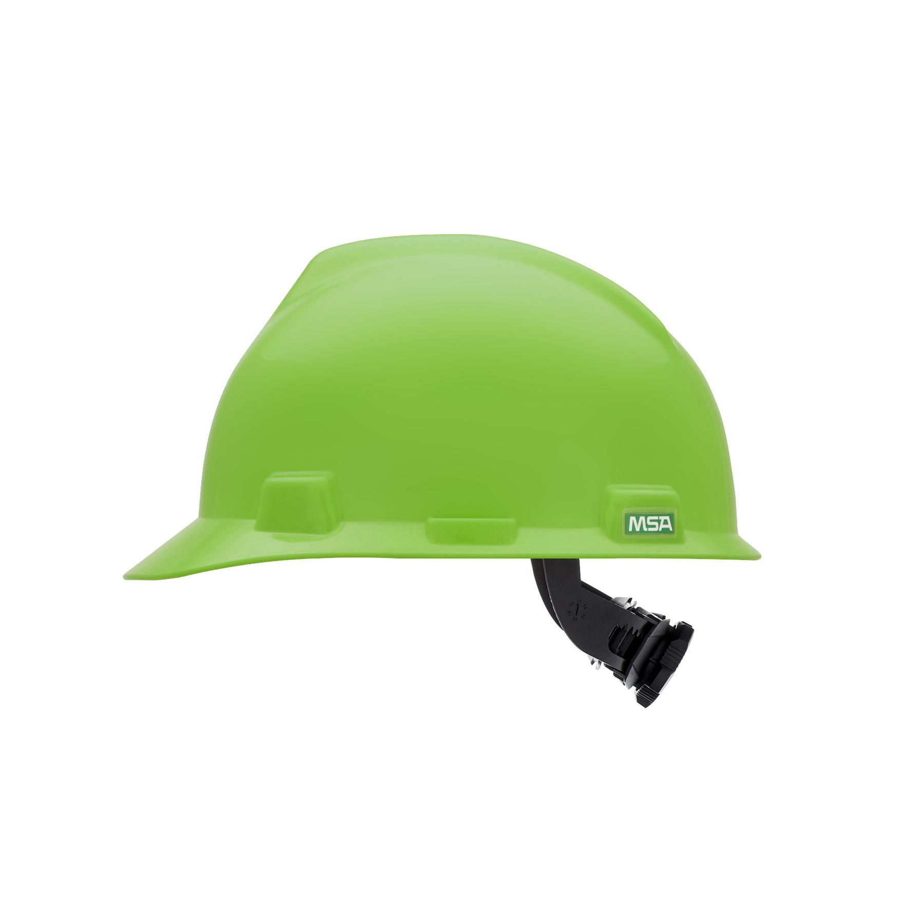 MSA V-Gard 489368 Front Brim Hard Hat, 6 Fits Mini Hat, 7-1/8 Fits Max Hat, Polyethylene, Fas-Trac Suspension, ANSI Electrical Class Rating: Class E, ANSI Impact Rating: Type I, Ratchet Adjustment