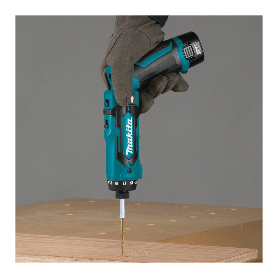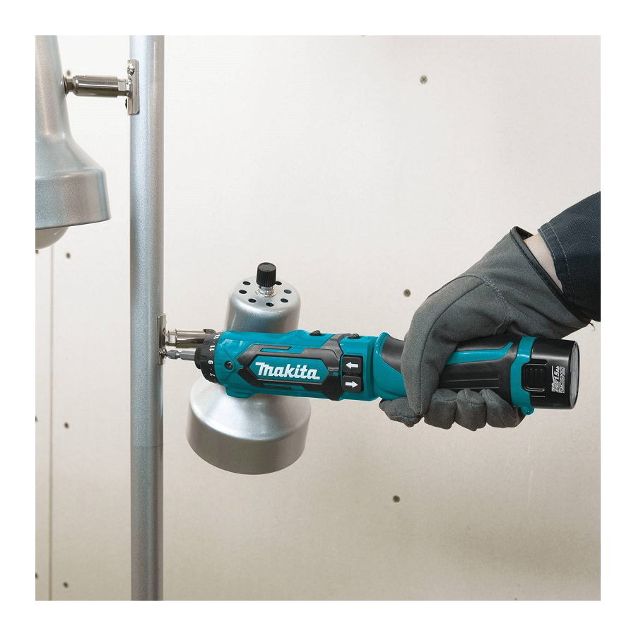 Makita DF012DSE Compact Reversible Cordless Drill/Driver, 3/16 in Steel, 1/4 in Wood Chuck, 7.2 V DC, 0 to 200 rpm, 0 to 650 rpm No-Load, 8-5/8 in OAL, Li-Ion Battery