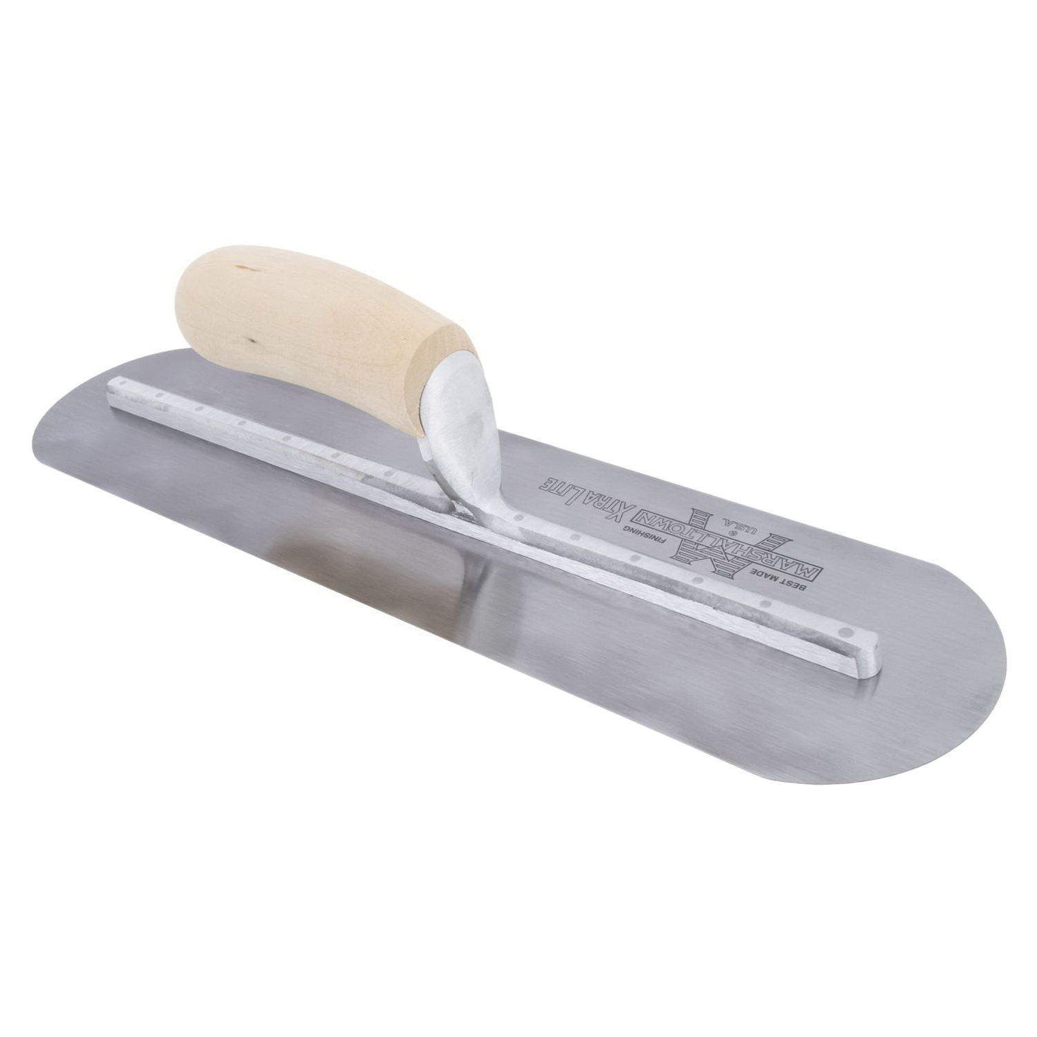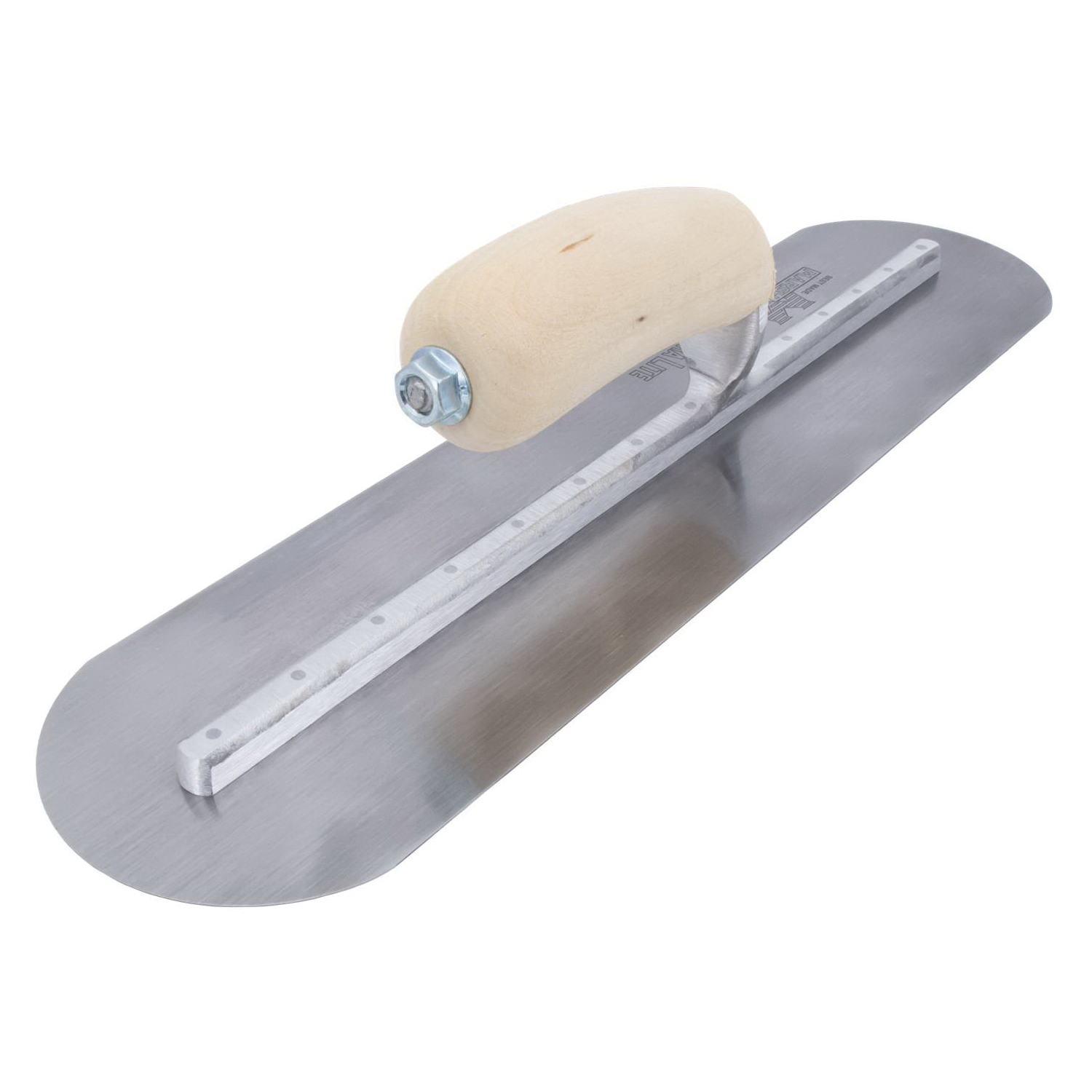 Marshalltown® Finishing Trowel, Round, 14 in Blade Length, 4 in Blade Width, Carbon Steel Blade, Curved Handle, Wood Handle