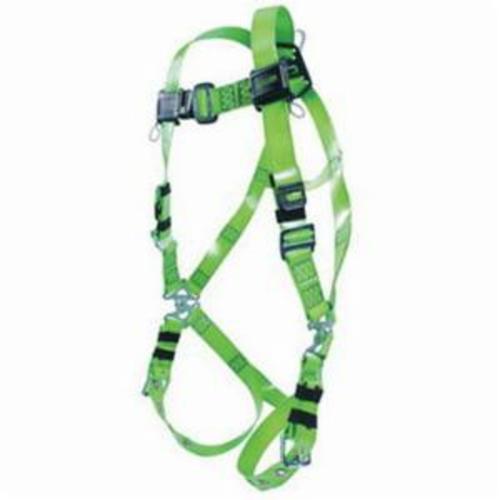 Miller® by Honeywell Harness, Series: Revolution™, Universal Size, 400 lb Load, 7000 lb Tensile Strength, Tongue Leg Strap Buckle, Mating Chest Strap Buckle, Friction Shoulder Strap Buckle, Vinyl Webbing Strap, Full Body Style, Steel Hardware, Green, Vinyl Coated