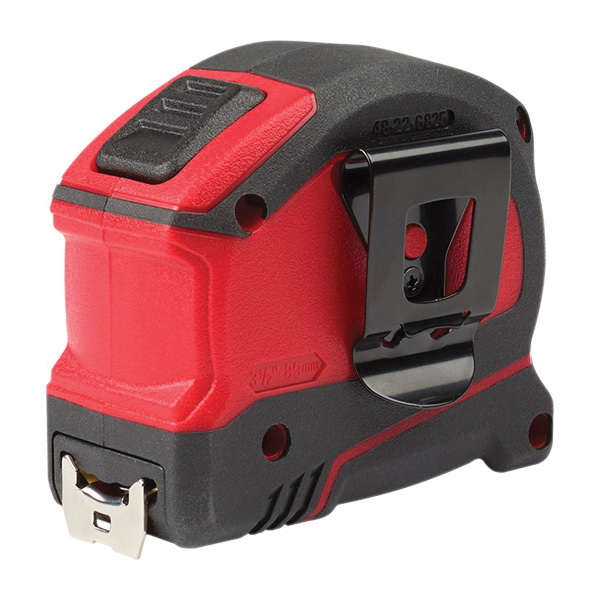 - Blade Length:25 ftBlade Material:SteelBlade Thickness:3/4 inBlade Width:27 mmCase Color:Black/RedCase Material:ABSCase Type:Closed, Closed ReelGraduations:1/16 inHook Type:FoldingLocking Type:Push ButtonMarkings:StudMeasuring System:Imperial/MetricRewind Type:AutomaticStandout:9 ftType:Compact