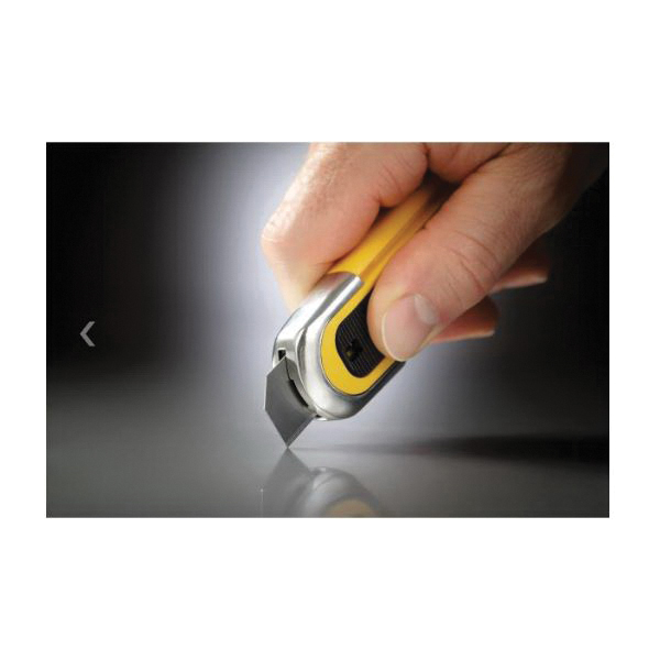 - Blade Change Method:SlideBlade Material:Stainless SteelBlade Type:Fully Automatic/RoundHandle Material:ABSHandle Type:StraightNumber of Blades Included:1Overall Length:6 inOverall Width:7/8 inThickness:7/8 inType:Fully-Automatic Heavy Duty Self-Retracting